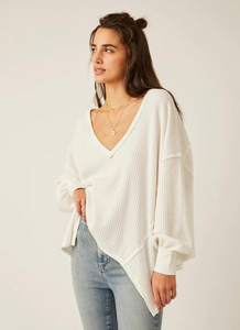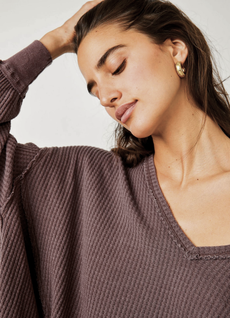 Introducing Coraline Thermal: the perfect way to add vintage vibes to your look! Relaxed and drapey with a classic waffle knit, exposed seaming, V-neckline and dropped shoulders, this totally timeless top is sure to be a staple! Style it up with denim or shorts for a simply chic look. You won't want to miss out on this must-have piece!