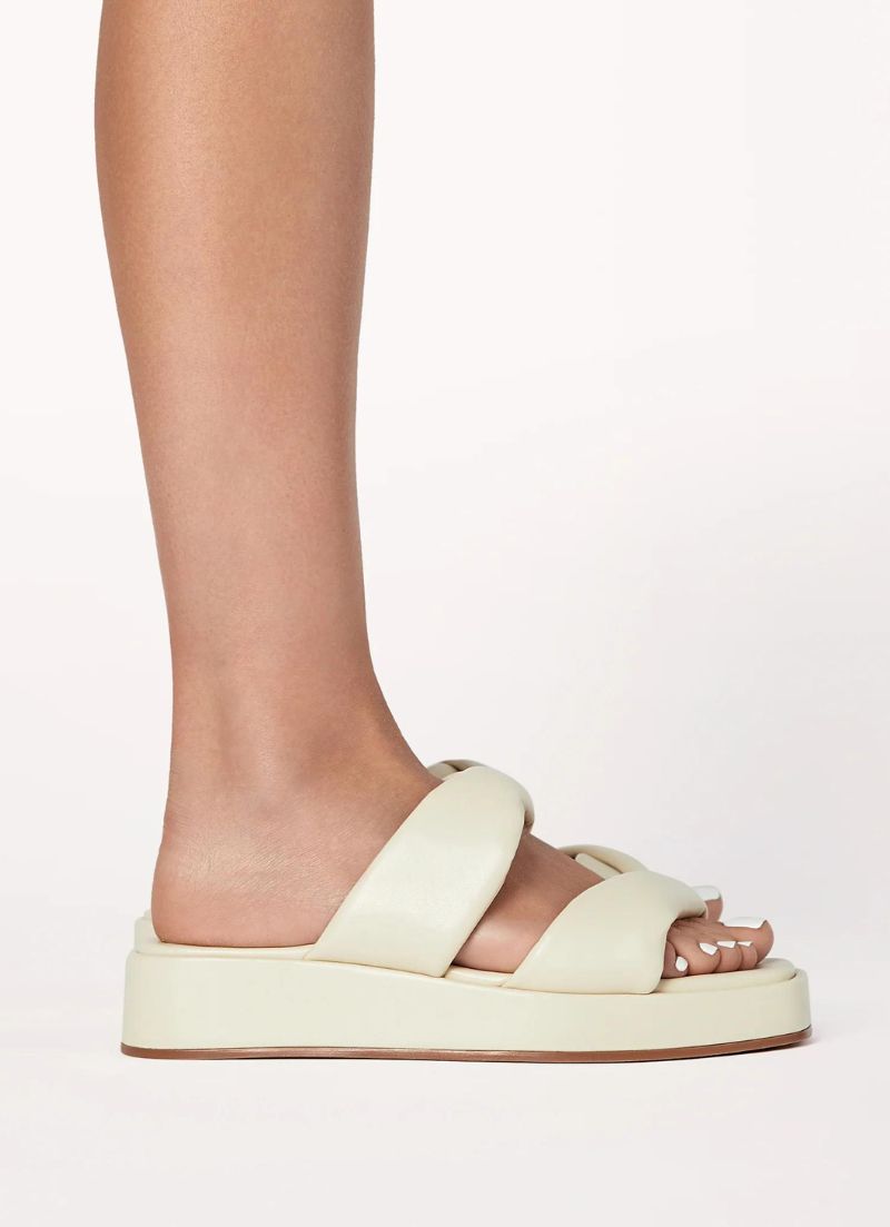 Elevate your summer wardrobe with comfortable and on trend platform slide! Made in an easy slip on design with a platform cushomed sole.