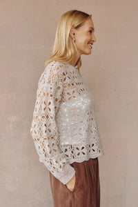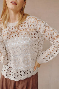 Embrace autumn’s charm with the Crochet Crewneck Sweater in Soft Almond. Its open, breezy crochet knit keeps you comfy all day, pairing perfectly with crisp morning air and sunshine-filled afternoons. The classic crew neckline frames your style effortlessly, while long sleeves with banded cuffs add just the right touch of cozy structure. Layer up and play with your look — this sweater makes every fall moment a little more delightful!