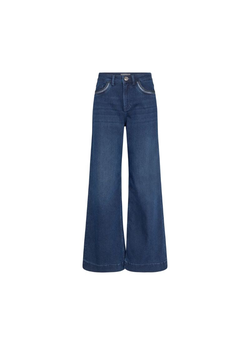 We love these 70s-inspired jeans. They are designed in a trendy wide-leg fit with a high waist and crafted from a cotton blend with a knitting effect. These jeans are finished with glam decoration at the pockets, and they look amazing with a statement tee tucked in or a classic shirt.