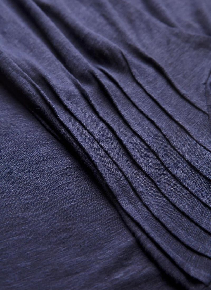 The Darja Tee is a long-sleeve, French linen jersey style with pintuck detailing on the shoulders to create structure and shape. The sleeve gathers into a cuff to form a subtle balloon shape which adds volume to a classic style.
