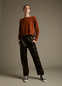 Step out in style in the Millie Pant. These vegan leather pants feature a front seam along the leg, an elasticated waistband for extra comfort and ease and two side pockets.