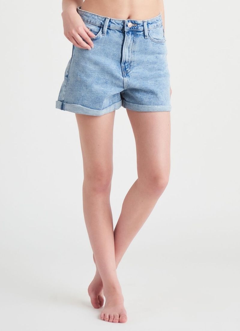 Classic Mom Short by Dex. Featuring four pockets, belt loops and a rolled up hem.