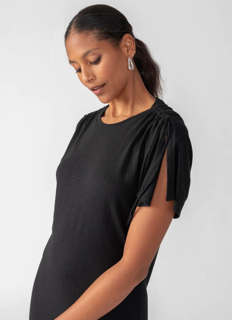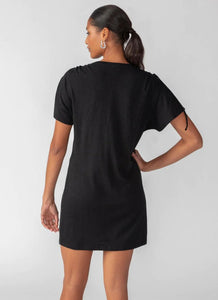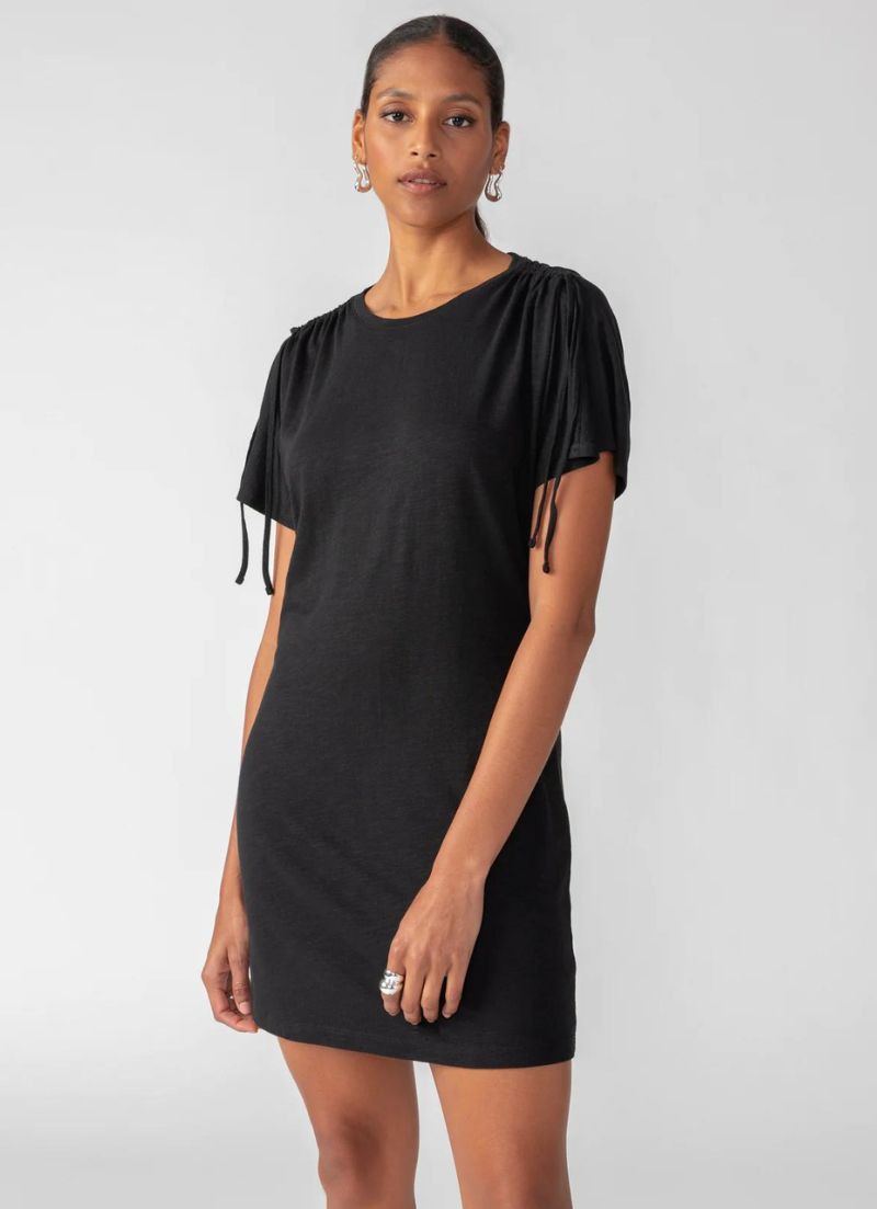 This dress features a crew neck, a relaxed fit and drawstring ties at the shoulder seams.