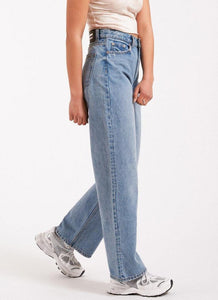 Wide leg, high waisted retro jeans with five pockets.