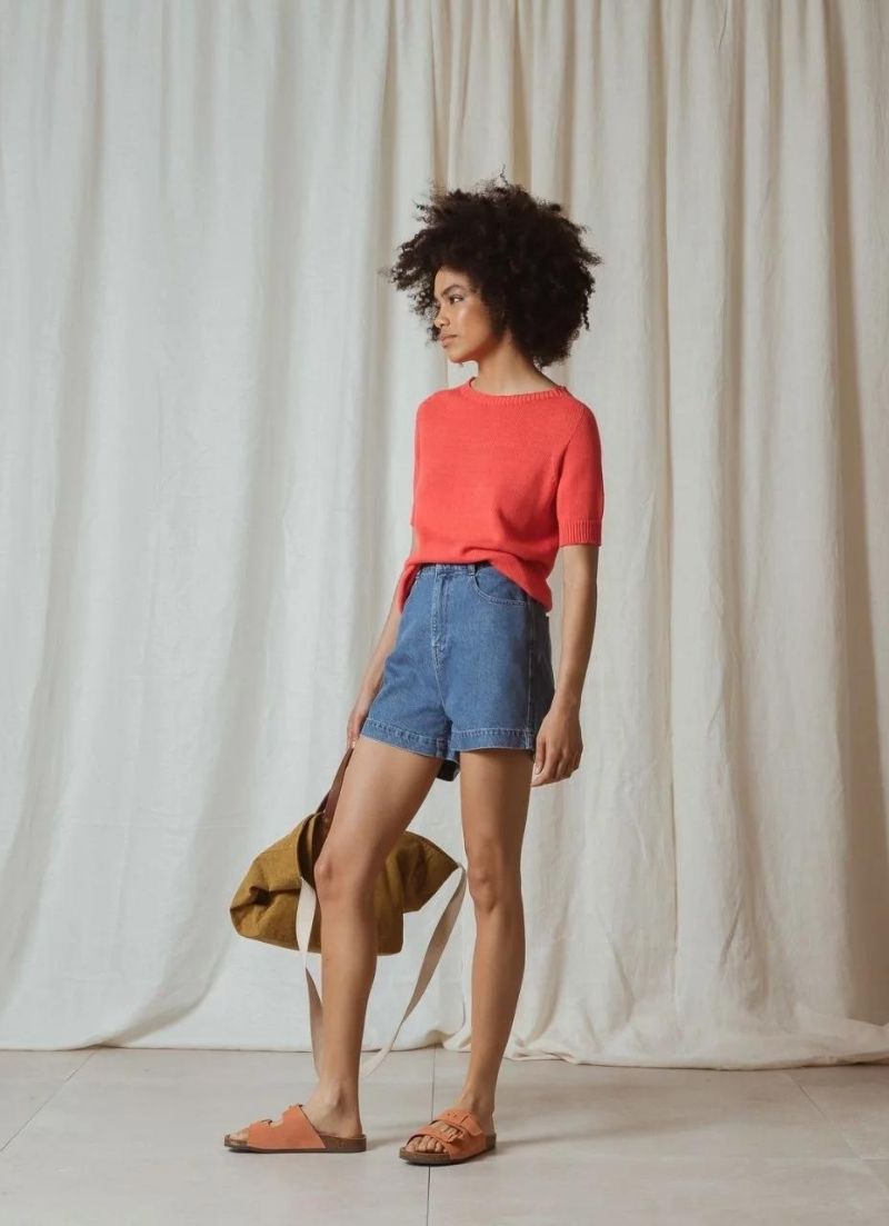 The Elliott is a t-shirt style jumpre. It features a round neckline, box shaped pattern and lightweight fabric that make it very comfortable to wear.