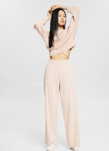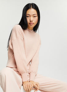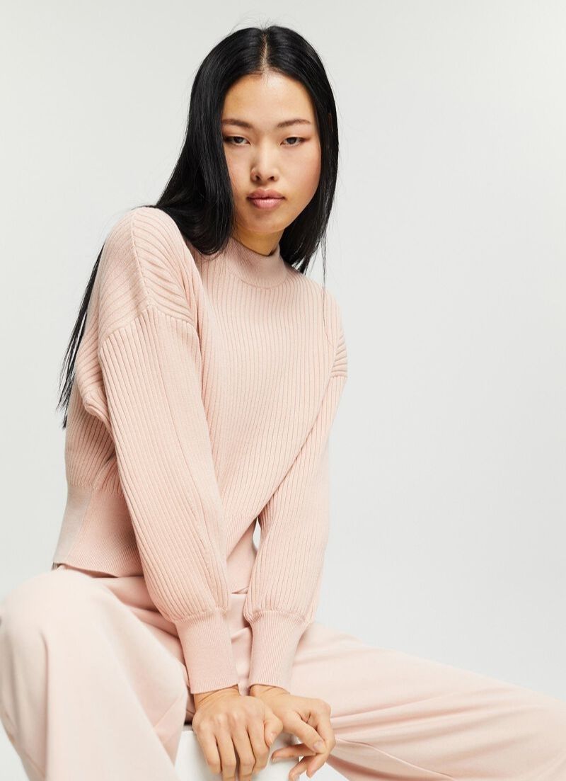 This cropped sweater features a wide ribbed texture, round neckline with a ribbed trim and wide ribbed sleeve cuffs and hem.
