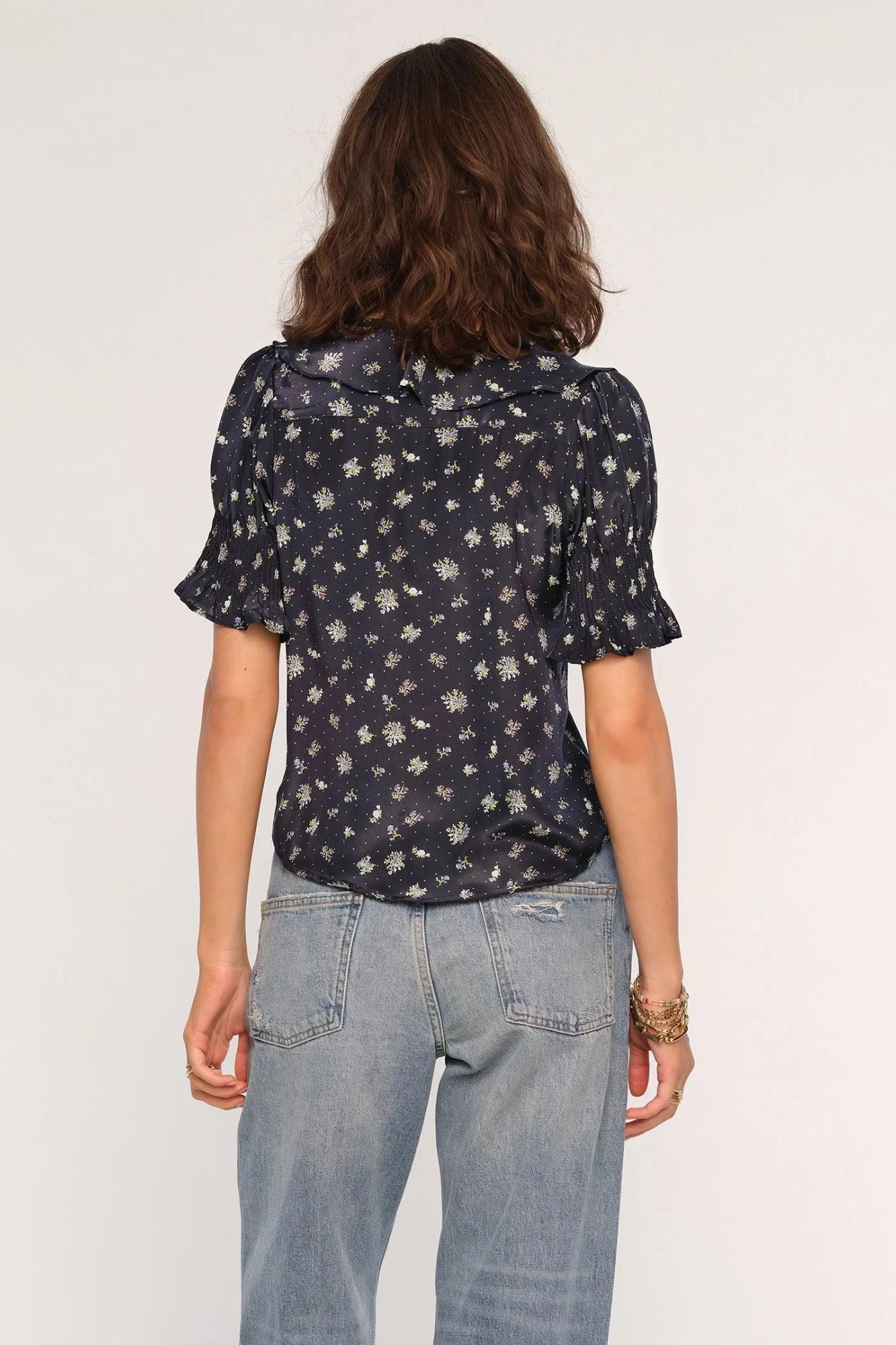 Enhance your wardrobe with the elegant Eugenia Top. This vintage-inspired blouse boasts a stylish ruffle neckline and delicate pintucks at the front and sleeve cuff. Perfect for a casual day out, pair it with denim cut-offs for a chic and effortless look.