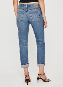The Ex-Boyfriend Slim jean features an authentic light denim wash that’s been uniquely washed down and faded to mimic a genuine pair of vintage jeans. The Ex-Boyfriend is cut with a flattering high-rise waist, and fits slouchy and relaxed from hip to knee before slightly tapering at the leg opening for a slimming effect.