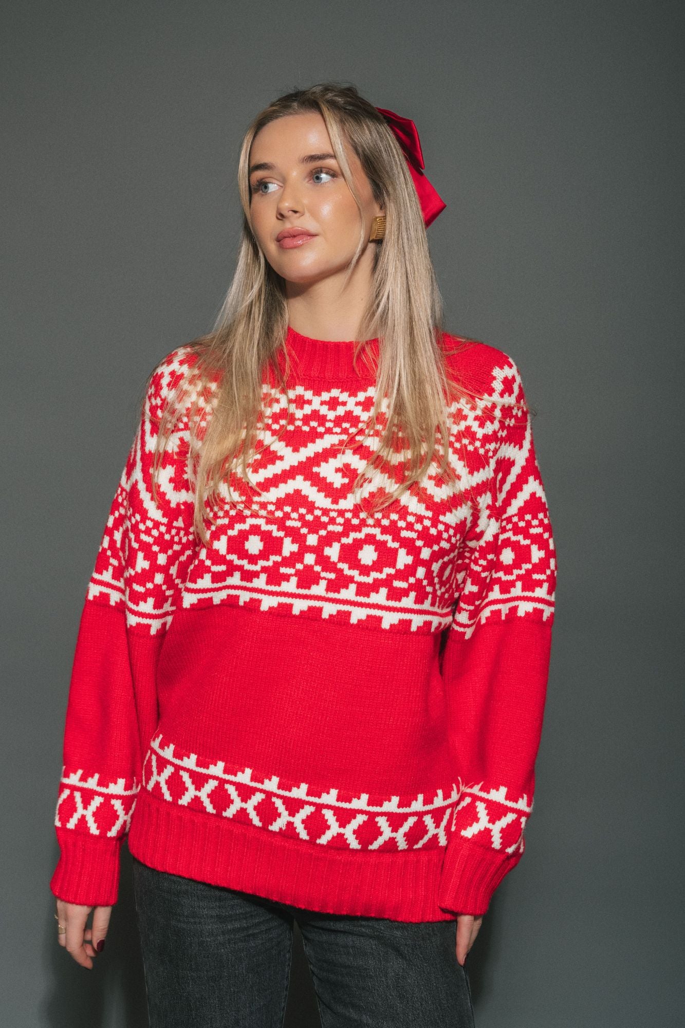 Upgrade your winter wardrobe with the Fairisle Sweater 2.0. Its slouchy, oversized fit and drop shoulder design offer both comfort and style. Perfect for a day out or a cozy night at the ski lodge. Stay warm and chic with this iconic sweater.