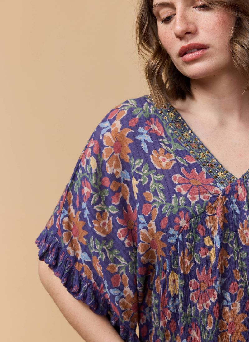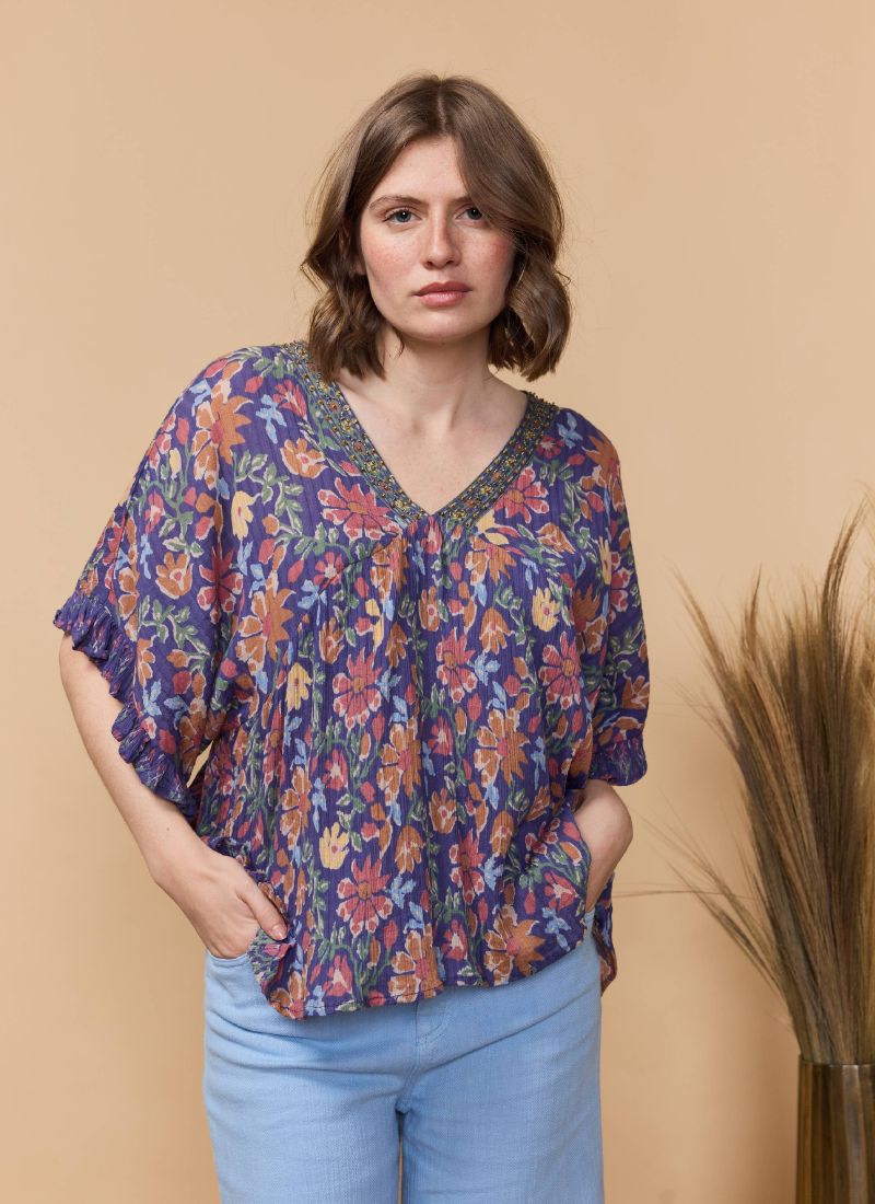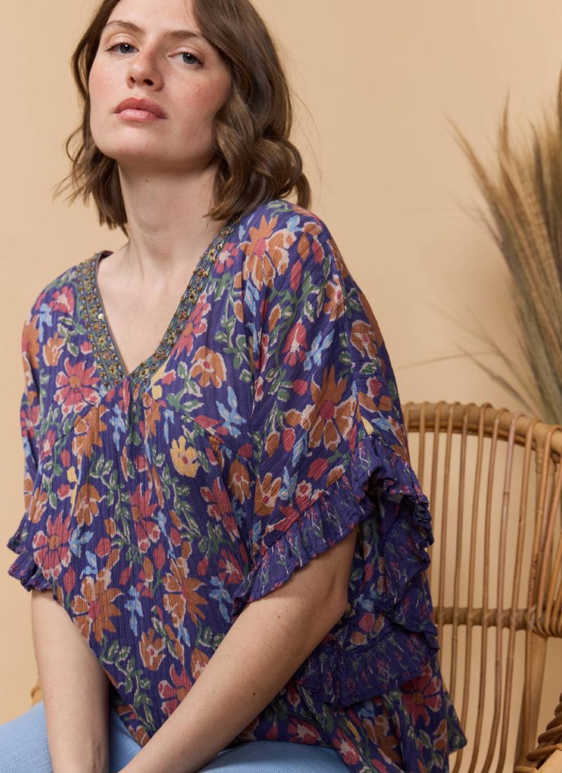 The Flaye Top is a unique and playful addition to your wardrobe. Featuring a vibrant print, ruffled short sleeves, and flattering gathers under the chest, this V-neck top is both stylish and fun. Perfect for adding a pop of color to any outfit.