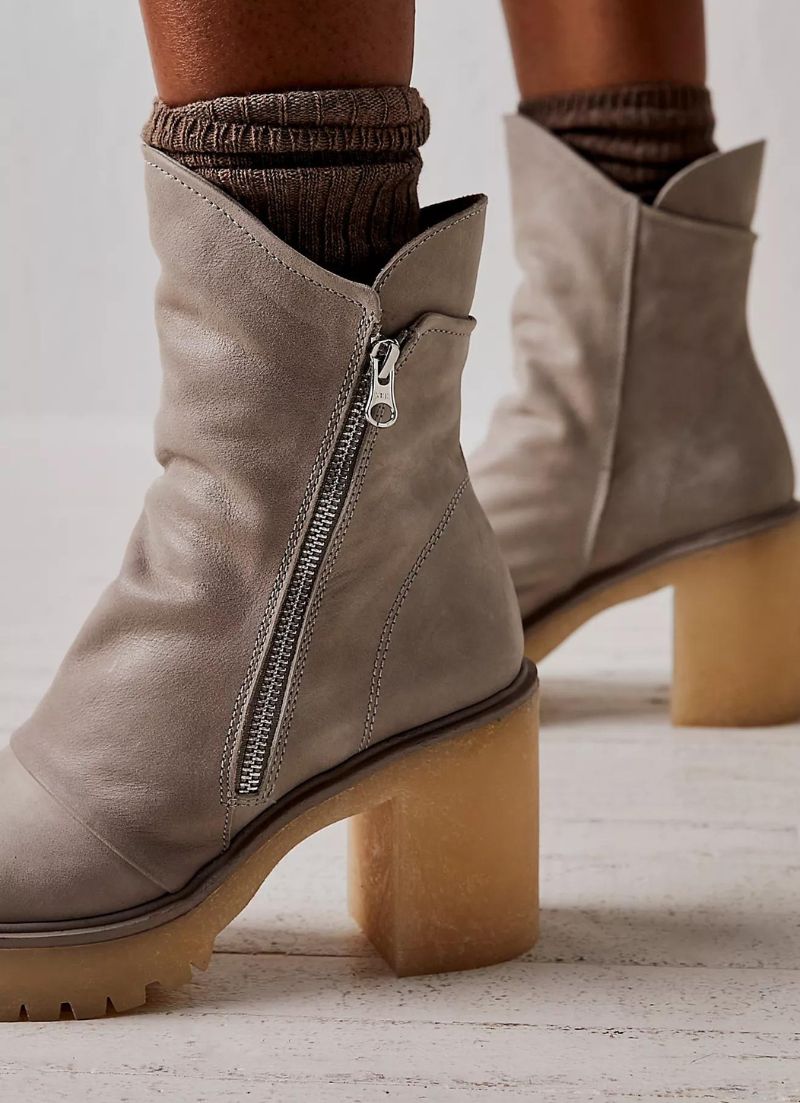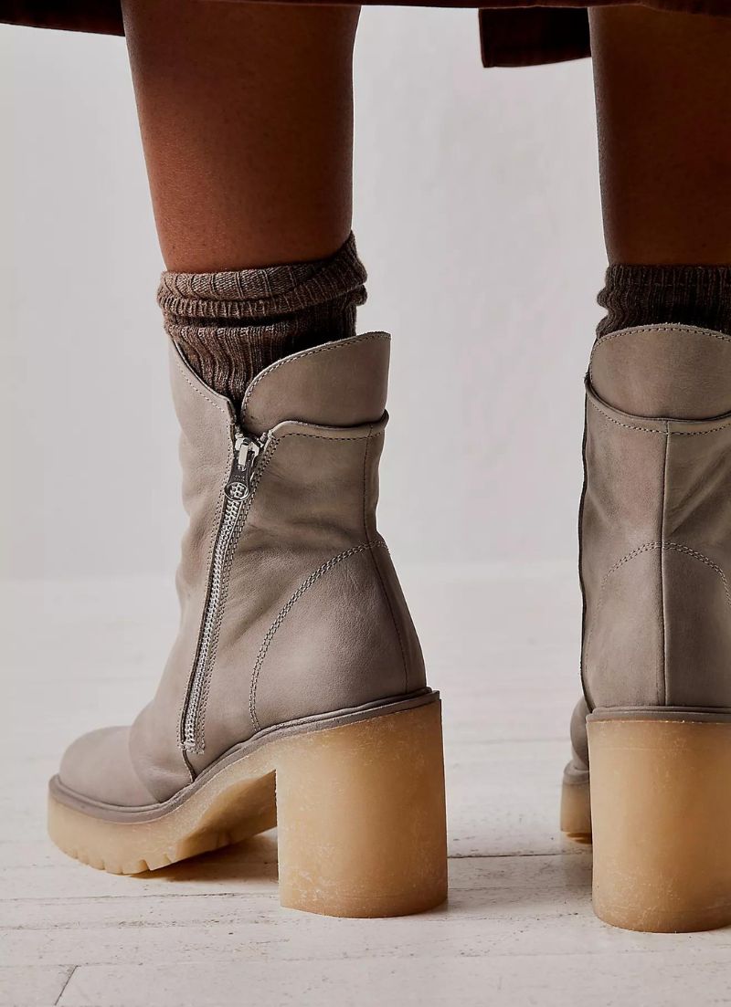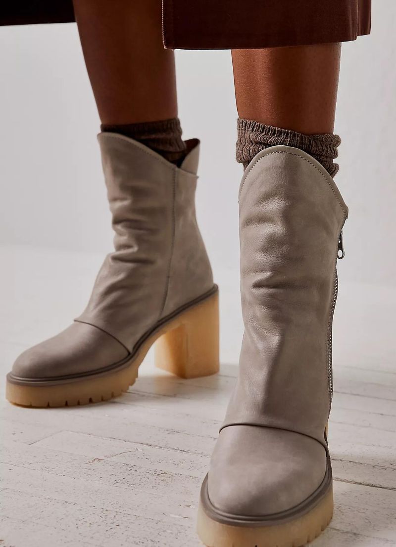 Step out in these so chic and effortlessly cool ankle boots featured in a buttery soft leather and pull on style with a V-shaped cut, bold zippered sides, and an eye catching block heel.