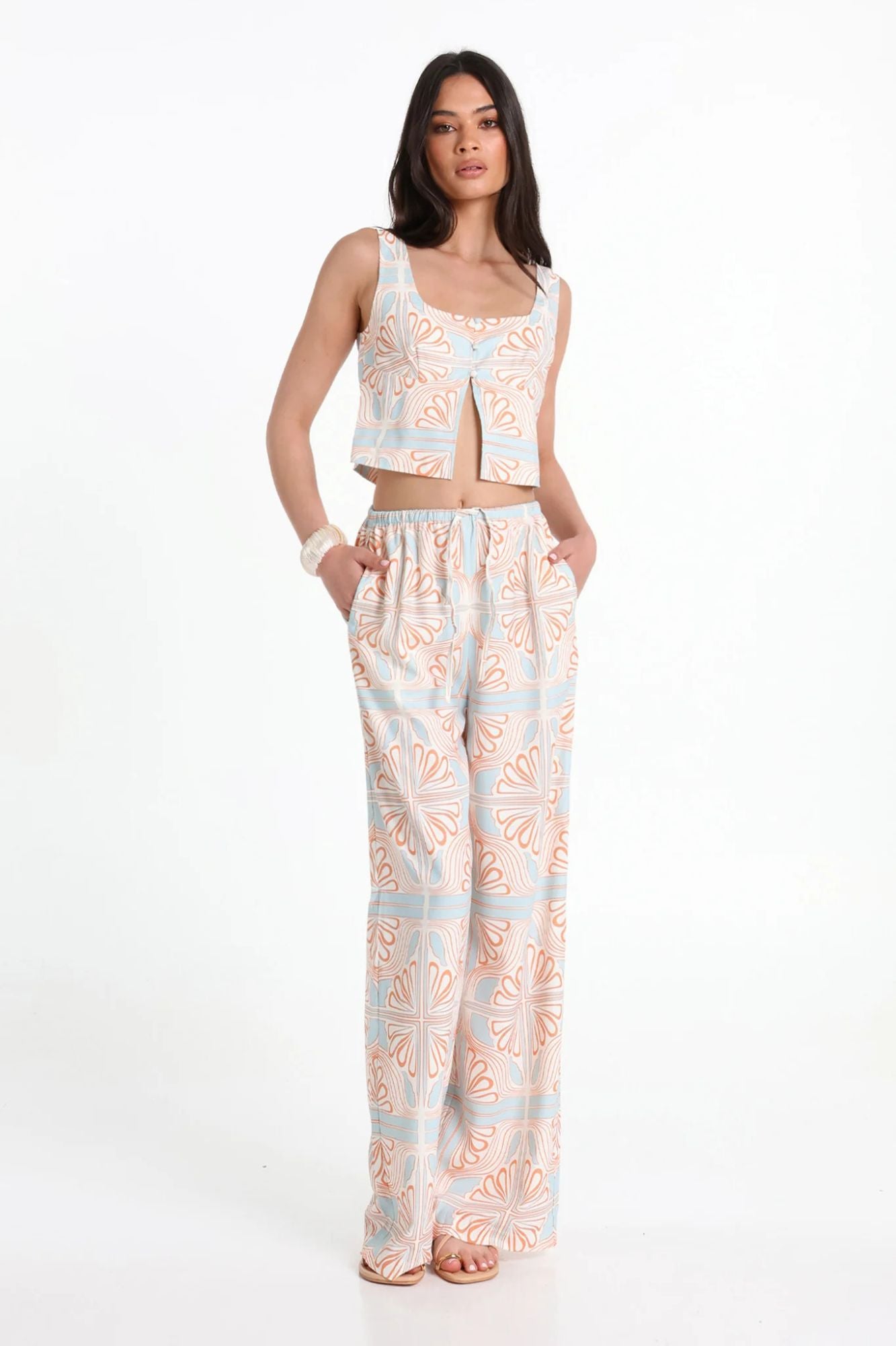 Introducing the Ginny Pants, a must-have for any fashion-forward individual! These Sahara print pants feature a relaxed fit for maximum comfort and style. With an elasticated waistline and convenient side pockets, these pants are perfect for any occasion.