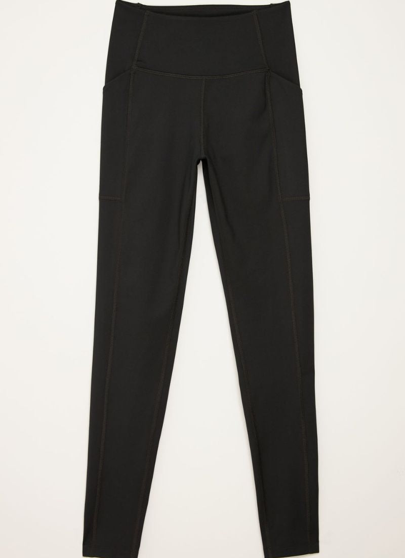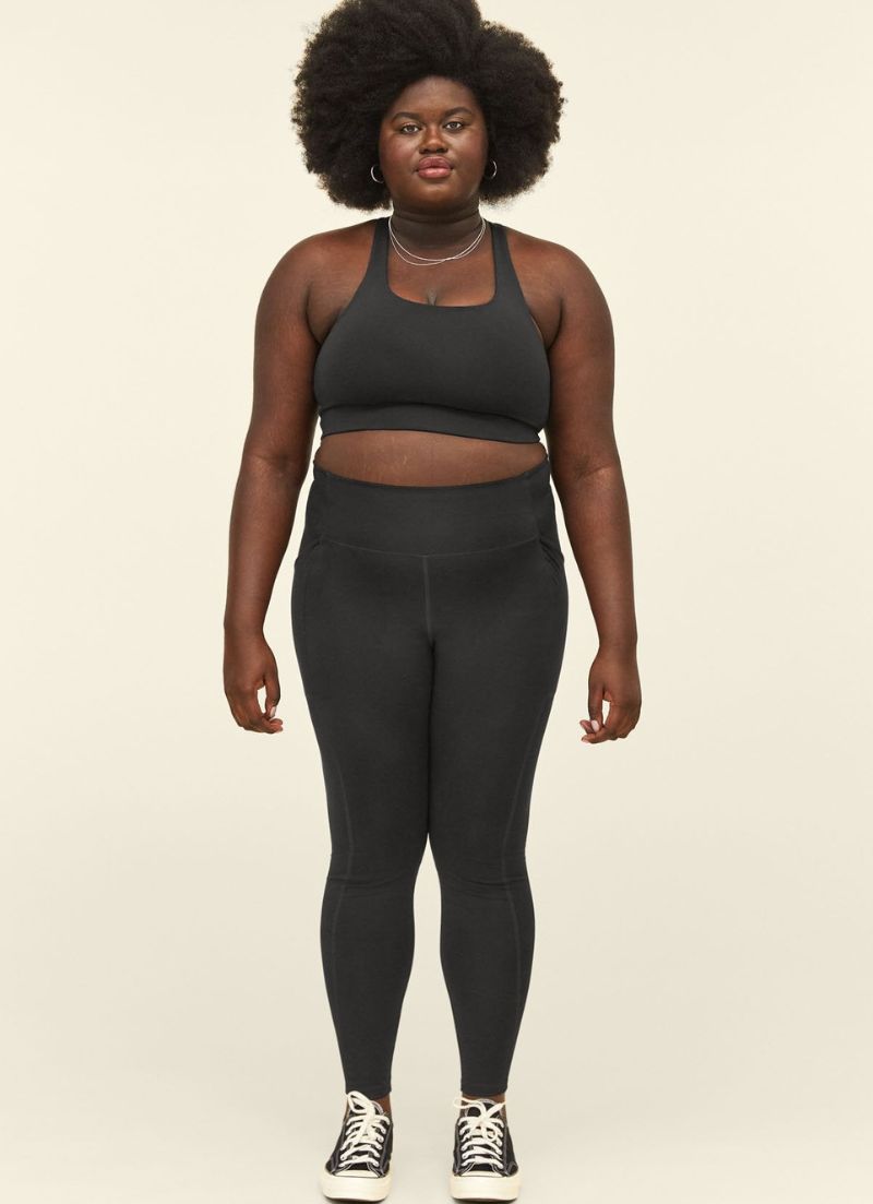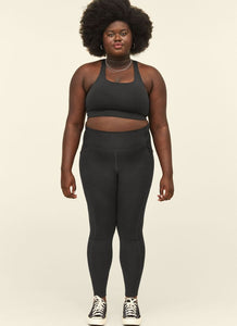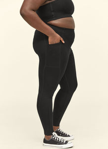The Compressive Pocket Legging has the same high rise, sturdy construction, and ultra compression as the original legging, but features sleek double side seams and a pocket on each hip for your phone, wallet, keys, vitamins, or whatever else you feel like putting in there.