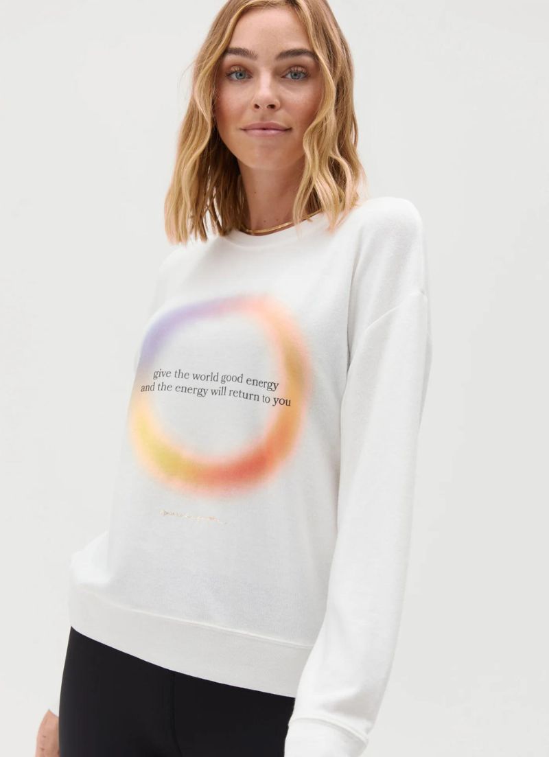 Keep the good vibes flowing in this beloved sweater. Designed in a buttery soft fabric, this got-to sweater will take you way beyond savasana.