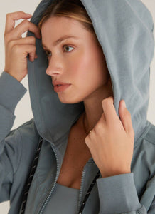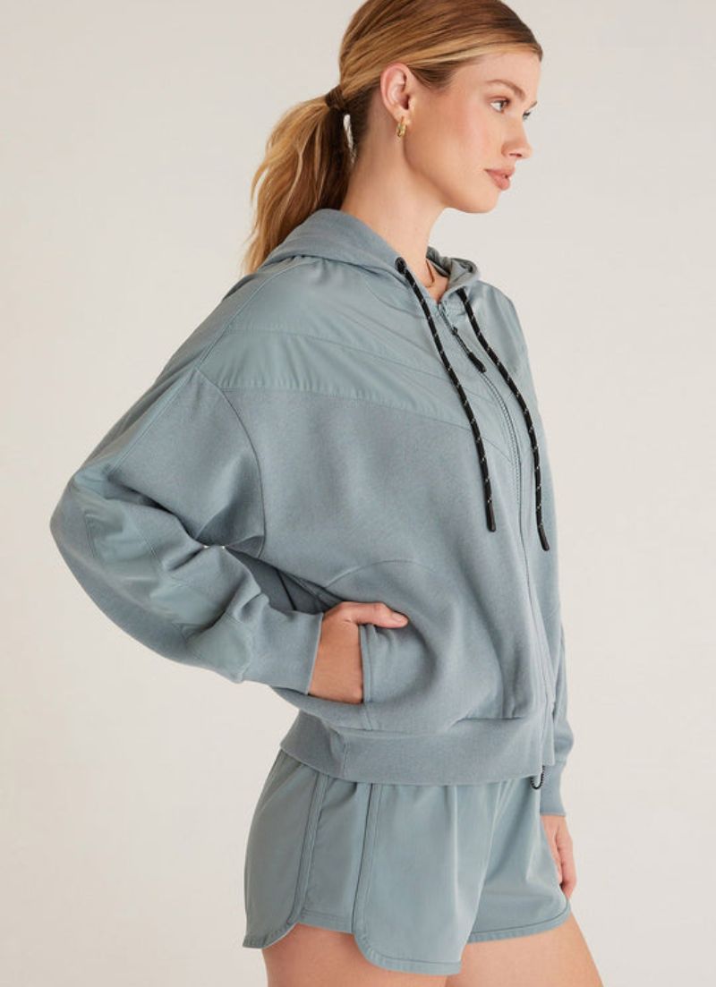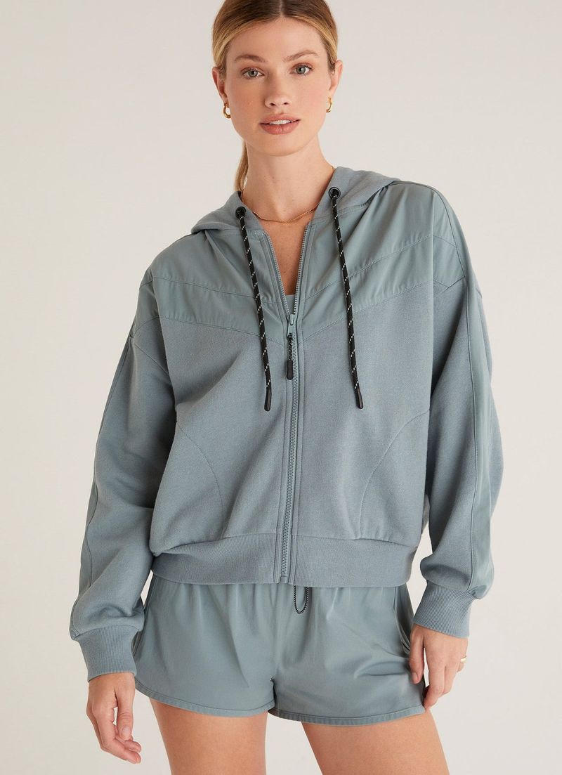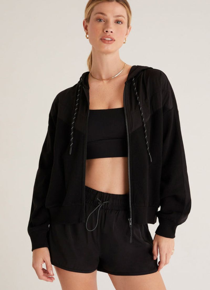 Zip up in the Good Sport Nylon Mix Hoodie. This jacket features nylon mix panels for a sporty, cool look you'll wear in and out of the gym.