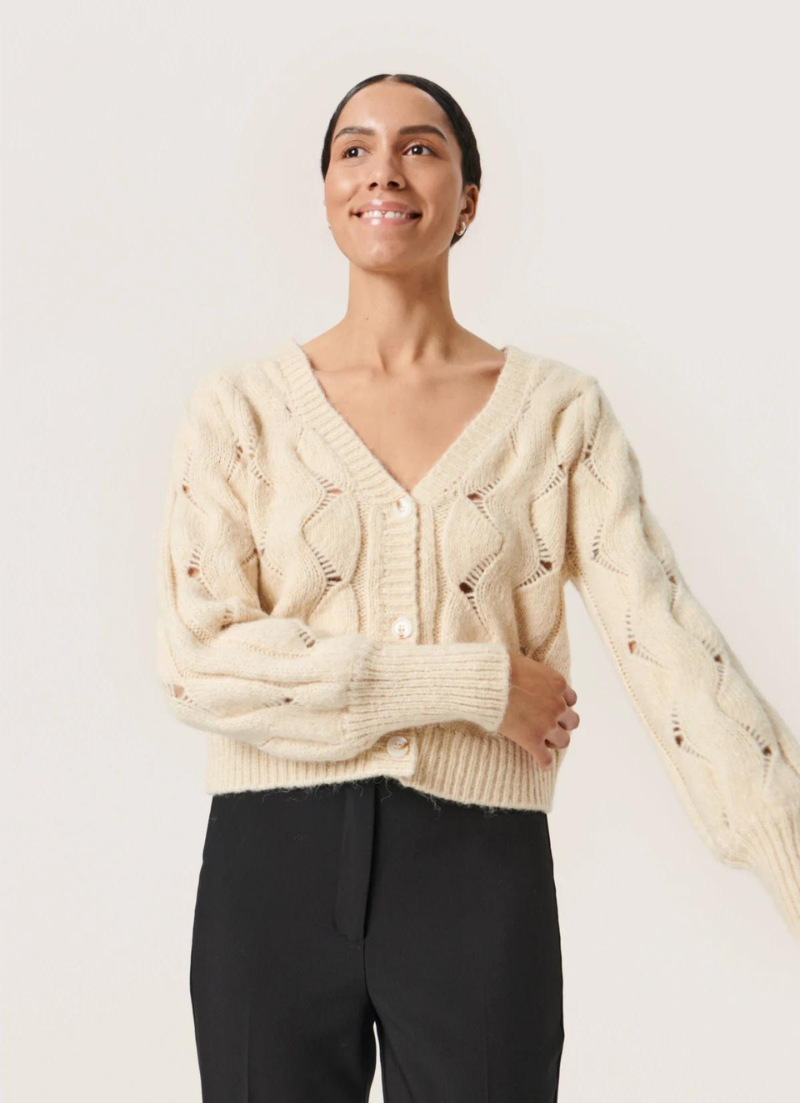Stay toasty and stylish with the Gunn Cardigan! Its classic sandshell hue will look great no matter the occasion, while its cardigan design is the perfect way to keep your look cozy and on-trend. Get ready to be the ultimate fashionista!