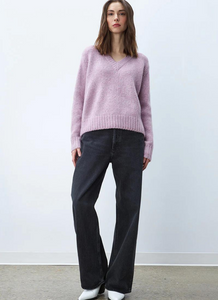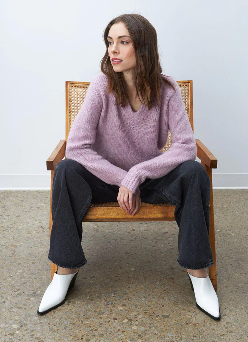 The Helena V-Neck Sweater by Line is an effortless knit in a soft pastel for the season. This oversized sweater is defined by its romantic pink hue and drop sleeves. Style yours with wide-leg jeans for an elevated look.