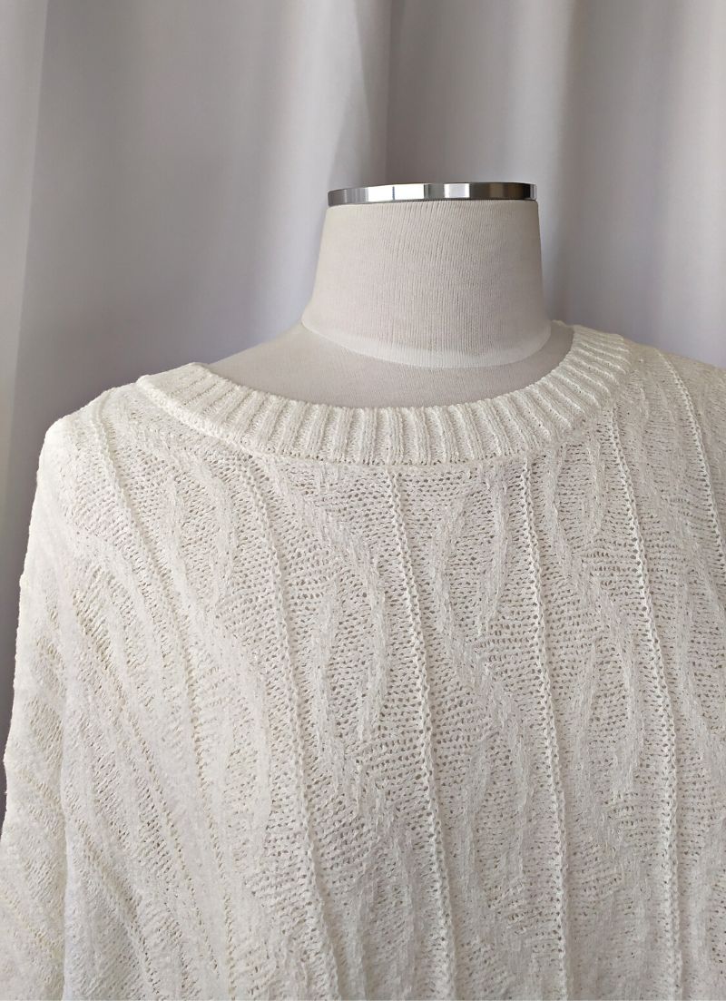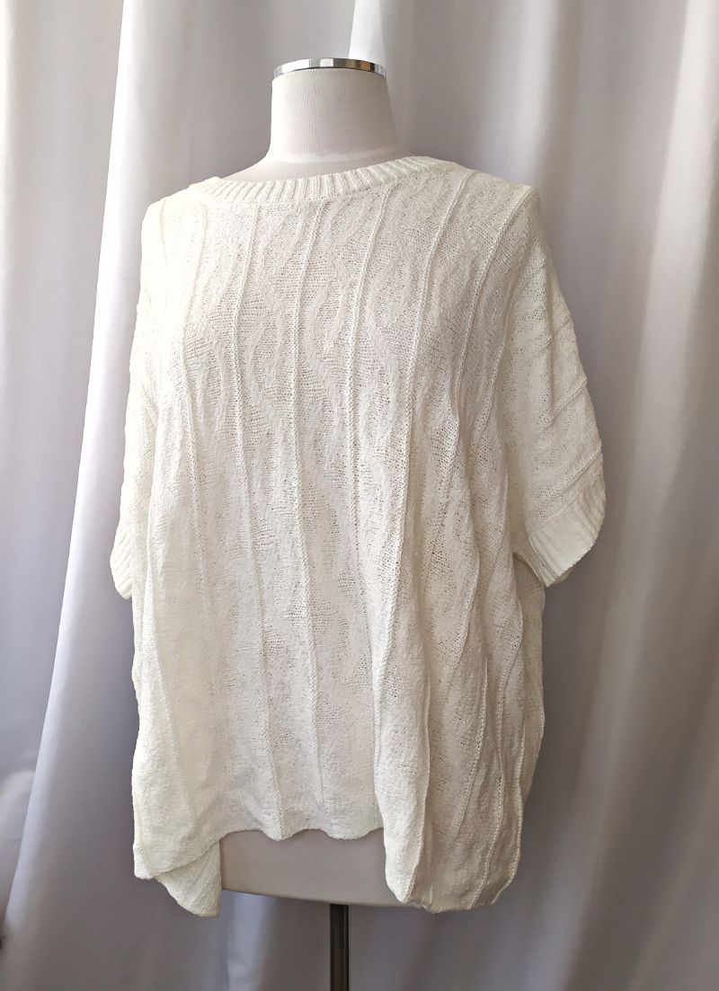 Hitta is a knit blouse with short sleeves. It has an oversized fit and a large round neck.