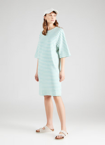 Get ready to turn heads in the Ingo Dress! This playful dress features a striped design and a soft, quilted hem. Made from cotton, it has a comfortable crew neck and straight hem. With an all-over pattern, this dress has a fun and unique look that will have you feeling confident and stylish. The model is 1.76m tall and is wearing size S.