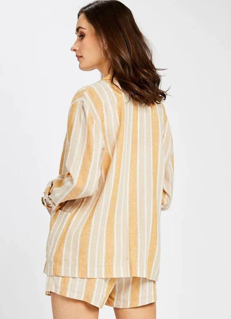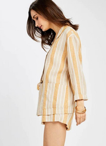 The Isla is a lightweight single button blazer that can be worn day or night. It ooks great with a white tee or tank top, as well as pants or jeans!
