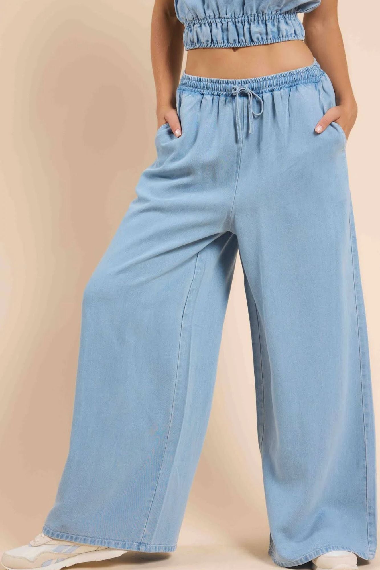 Get ready for ultimate comfort with our It's Pouring Elastic Drawstring Pants. Featuring a drawstring waistband with added stretch, these high rise pants will keep you feeling cozy and stylish. With convenient pockets and a wide leg design, you'll never want to take these off. 30" inseam.