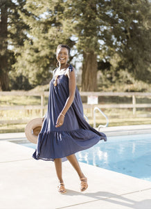 The Prairie Dress is delicate, feminine and dreamy. The braided adjustable straps with the pom pom fringe tassle make styling this dress a snap.