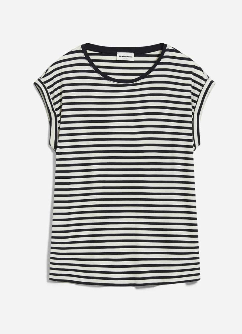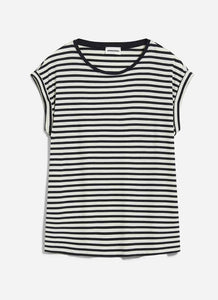 A short sleeve loose cut t-shirt featuring a round neck and stripes all over.