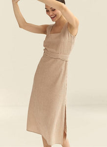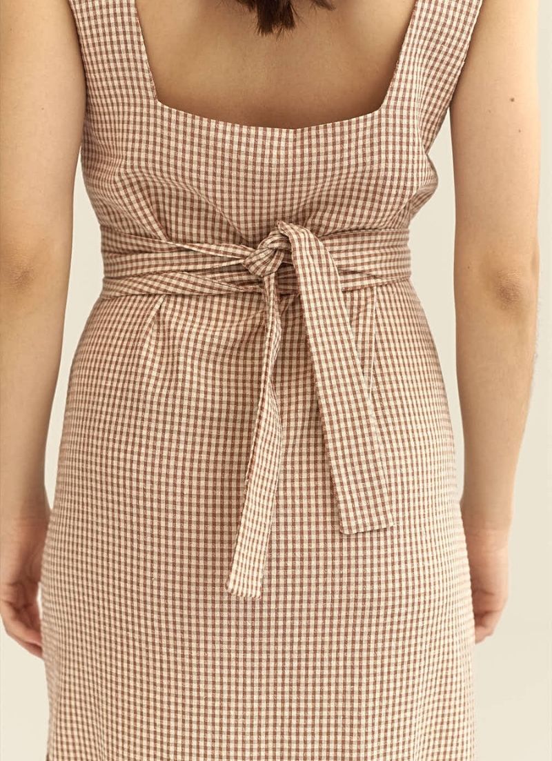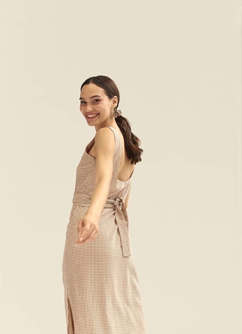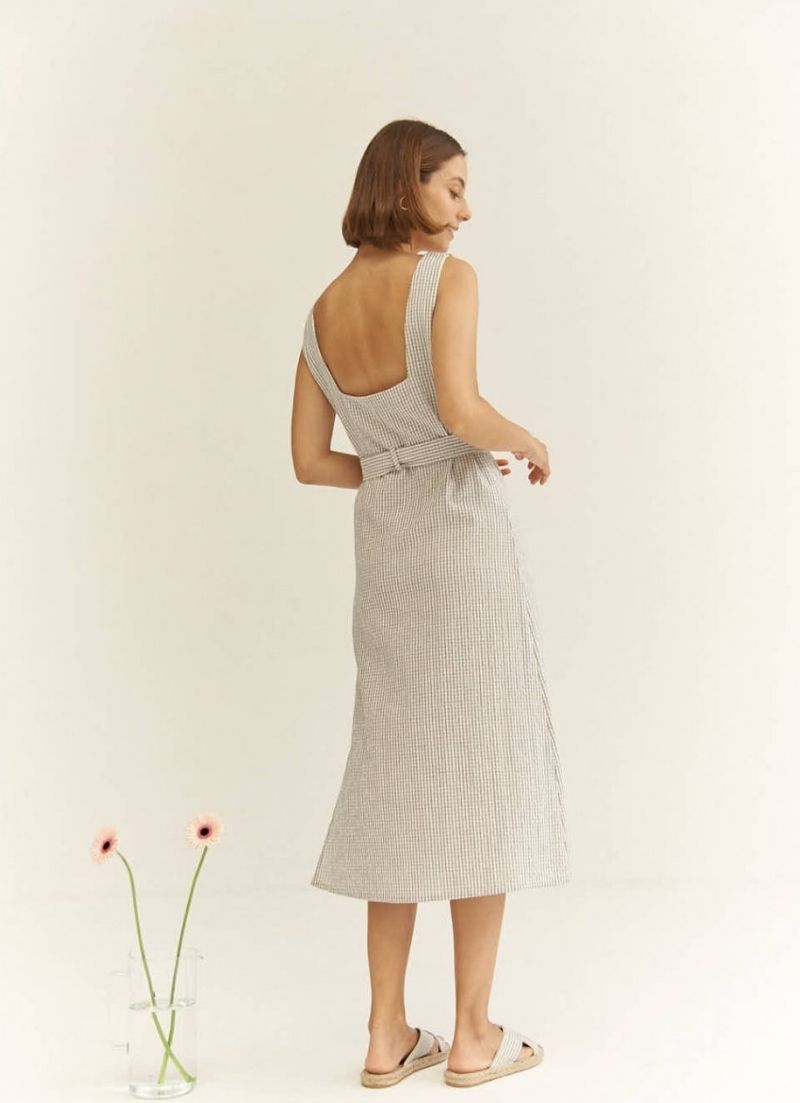 With a vichy print, wide straps and square neckline, the Jolo dress will become a timeless essential piece in your closet. Among its details, you will find an invisible zipper closure and a belt with belt loops at the waist.