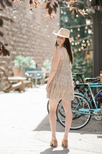 The perfect transitional piece! Introduce your spring wardrobe with this mini dress which features spaghetti straps and a flowy fit. Pair with a denim jacket!