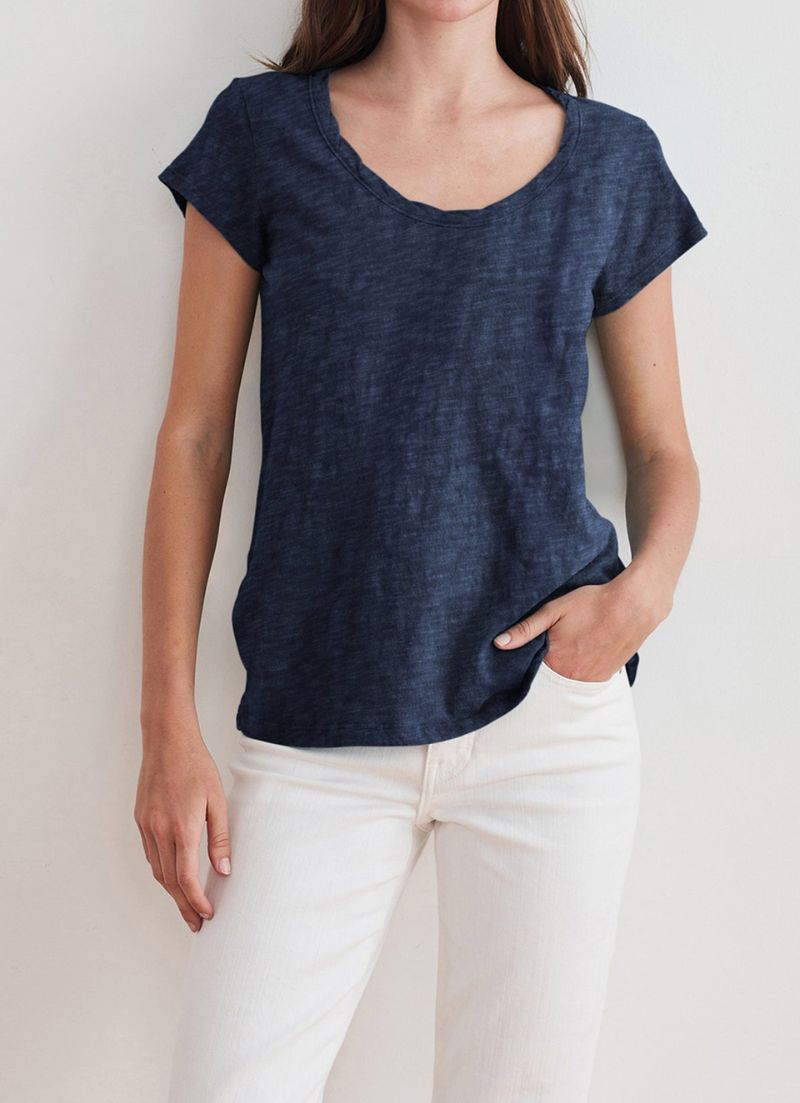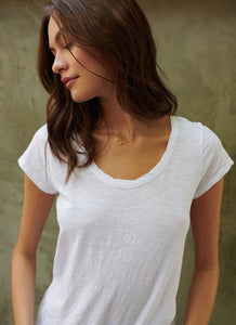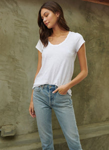 Simply genius. This soft cotton top is the perfect stand alone tee. With a scoop neck and vintage-cropped sleeve, this will be on heavy rotation in your closet.