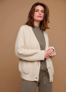 Super soft knitted cardigan. This cozy cardigan features a deep V-neckline, two open front pockets and a button closure. This cardigan is both comfortable as stylish to wear.