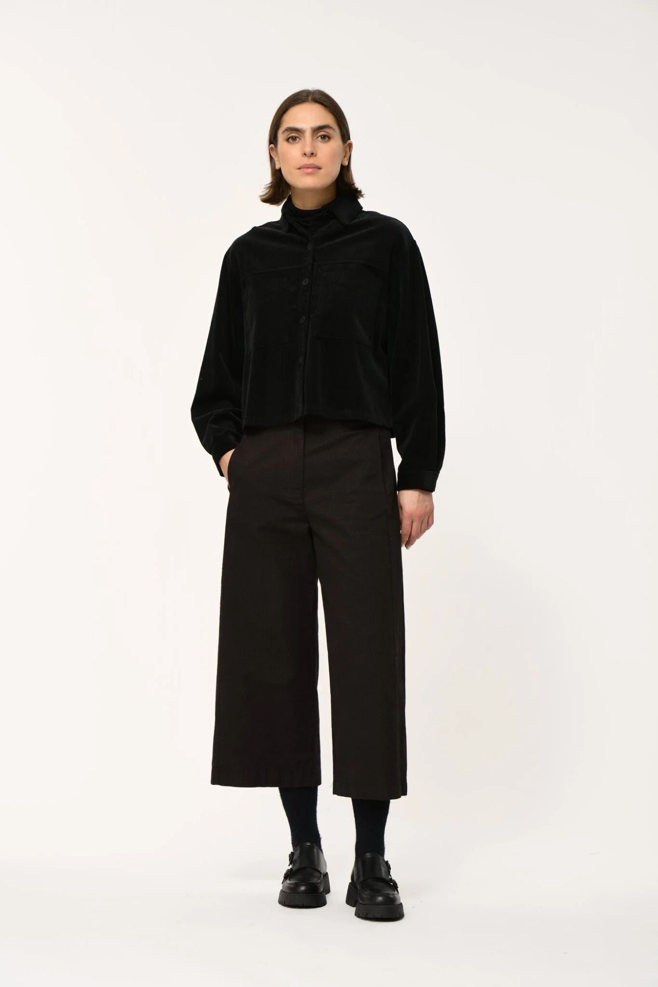 The Komio Jacket offers a hip-length, boxy silhouette that perfectly blends casual comfort with timeless style. Crafted from soft corduroy, it brings the familiar charm of your favorite denim shirt into a cozy new texture. Featuring convenient front patch pockets, this versatile jacket pairs effortlessly with almost anything, especially the coordinating Komodo Wide Leg pant for a polished, coordinated look. Elevate your everyday wardrobe with this must-have layering piece that combines style and practicality seamlessly.