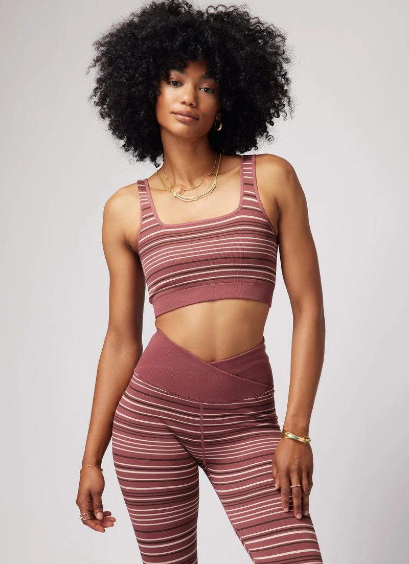 Something striped. A seamless bra with vintage inspired custom jacquard pattern, contrast elastic binding, and lined with lightweight seamless jersey fabrication.