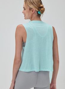 Let your soul guide the way in this crop tank, features dropped armholes for added ventilation, exaggerated rib neckband, and a flattering shape designed to pair with all of high waisted leggings and biker shorts, or even denim.