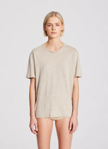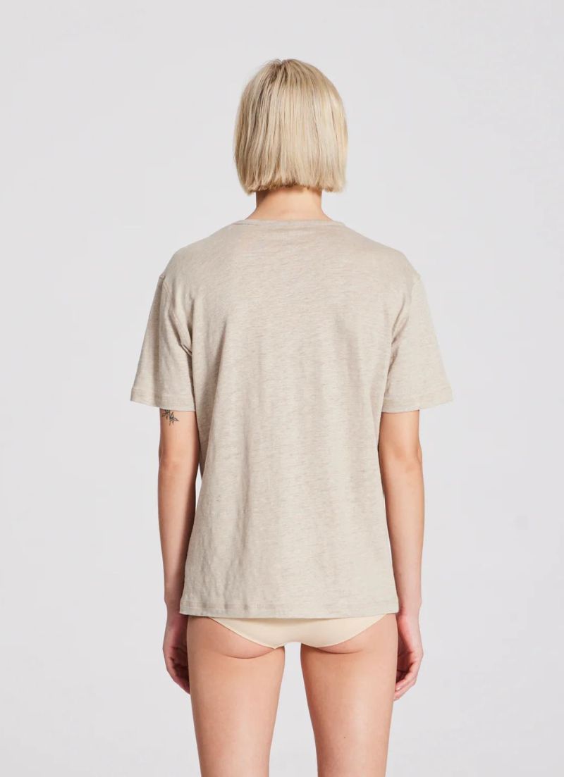 A short sleeved round neck t-shirt made from linen; a natural, durable material that lets your skin breathe.