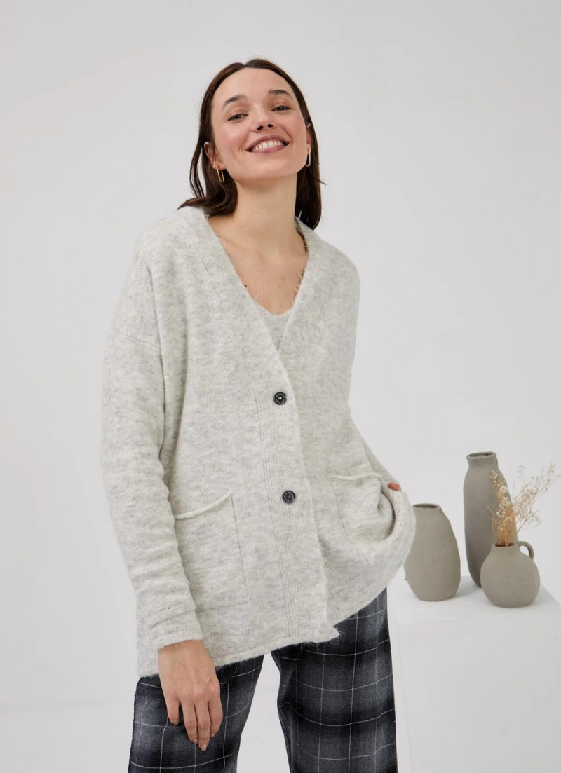 Ideal for a comfy 'fit, the Lladurs cardi's knitted up with long sleeves and subtle touches at the neckline, cuffs, and pocket mouth.