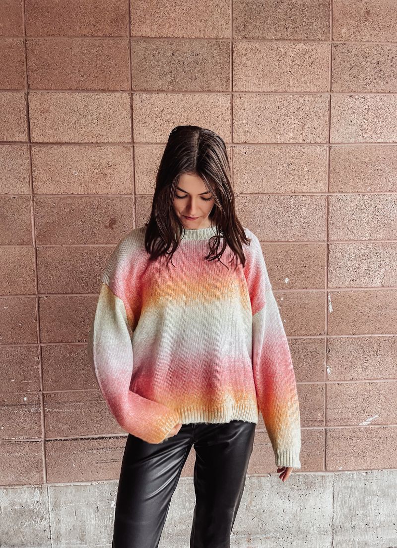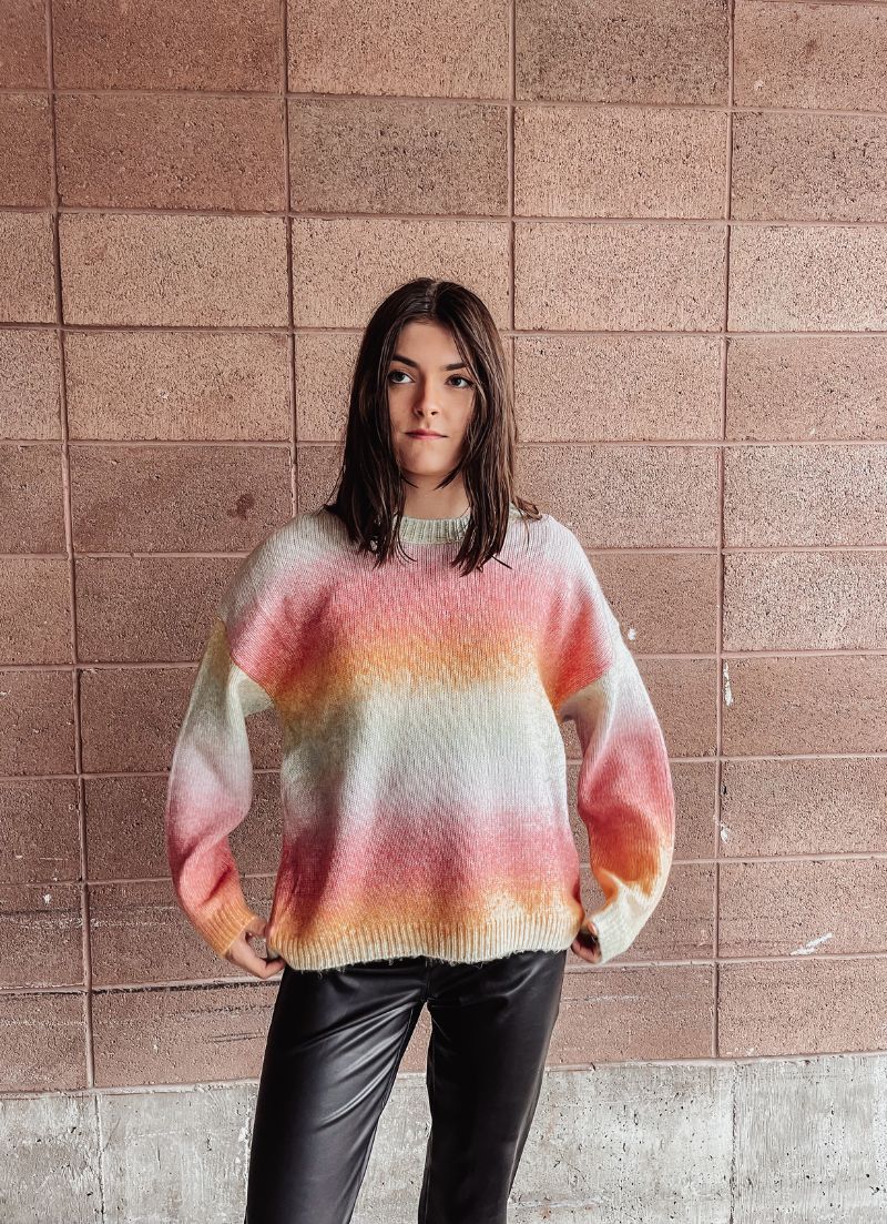 This gorgeous oversized sweater features a slight boxy fit. Pair it with your favourite jeans or pants and some boots.