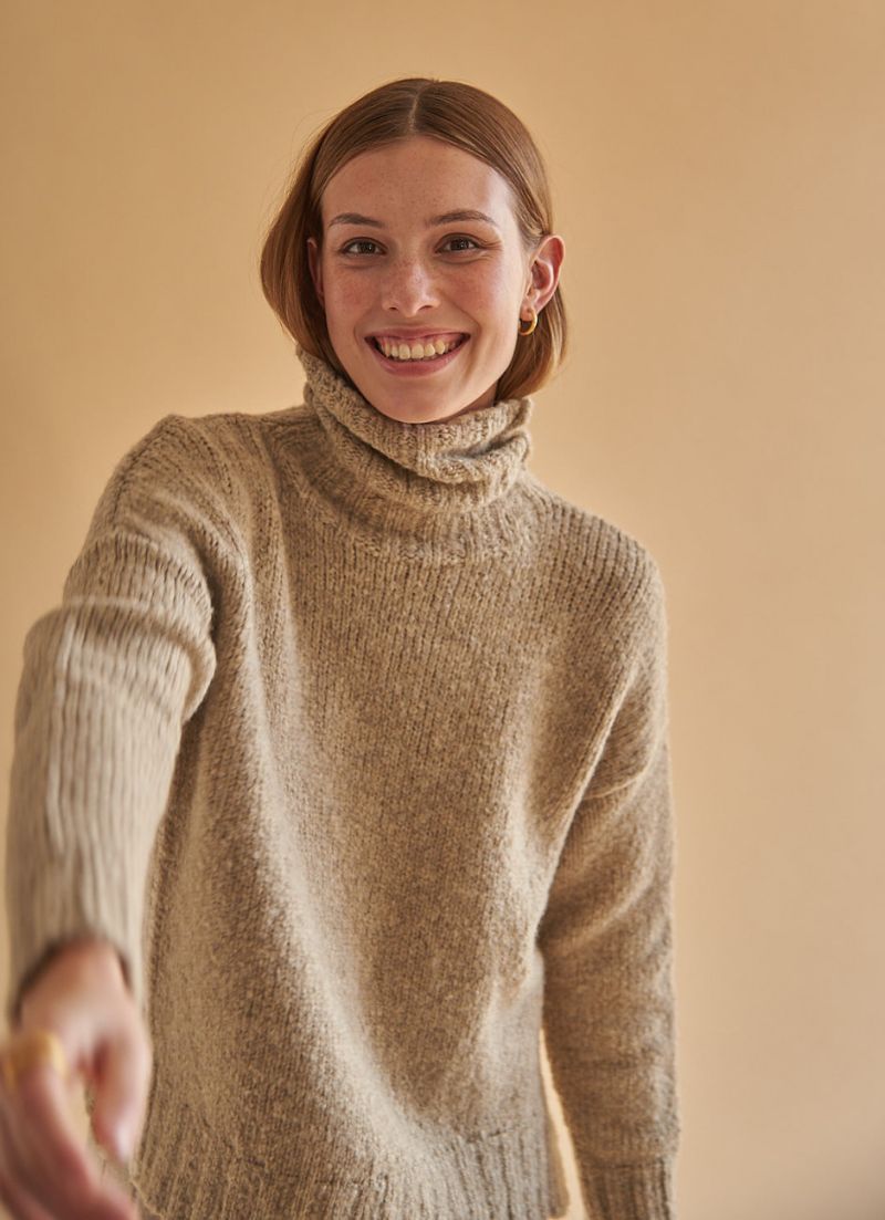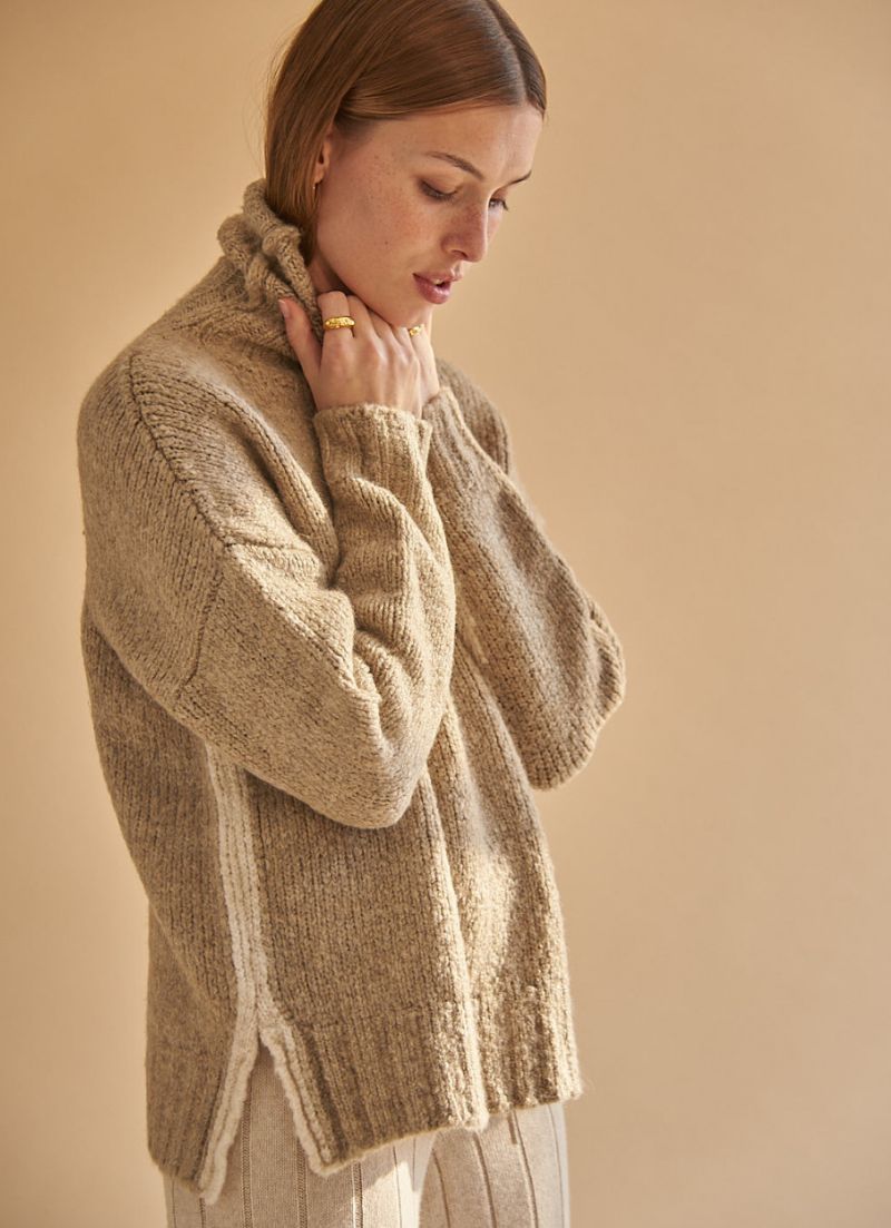 Your new fave knit sweater for the season. Featuring a chunky turtleneck, contrast knitted stripes and small slits on the side.