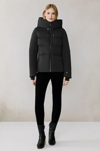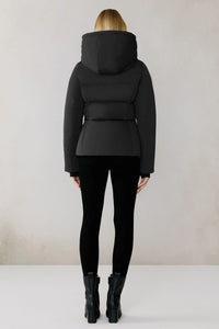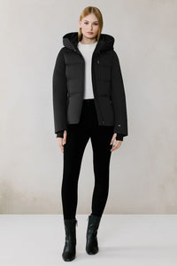 Experience warmth and style with the Marilou Contour Down Jacket by SOIA & KYO. Its figure-flattering silhouette and down fill insulation keep you cozy in temperatures as low as -15 °C. The storm visor hood shields you from harsh weather, while exposed zipper details and thumbhole cuffs bring a sleek, technical edge to your winter wardrobe. Stay protected and polished no matter the chill.