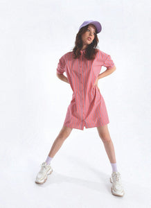 Step out in style in our Mena Shirt Dress! Keep cool with the short sleeves and small lapel collar, perfect for those days when you just can't beat the heat. Plus, make 'em do a double take with the fine stripes and slightly longer back – you won't just blend in with the crowd!