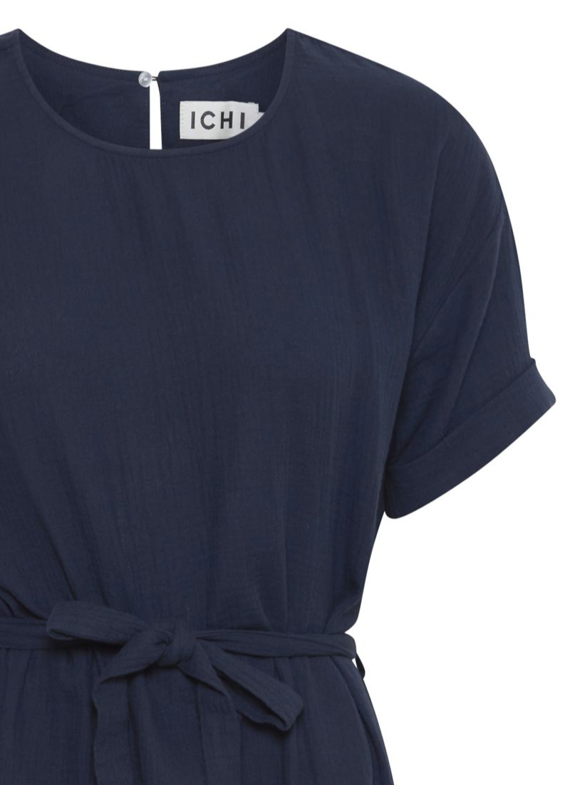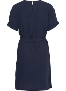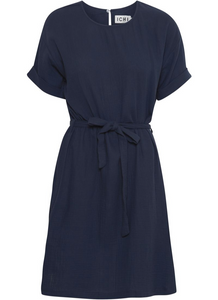 Step out in style with the Mika Dress! This casual dress features a round neckline, dropped shoulders, and 1/2 sleeves for a comfortable fit. The midi length adds a touch of sophistication, while the tie belt fastener gives you a customizable and flattering look. Perfect for any occasion!
