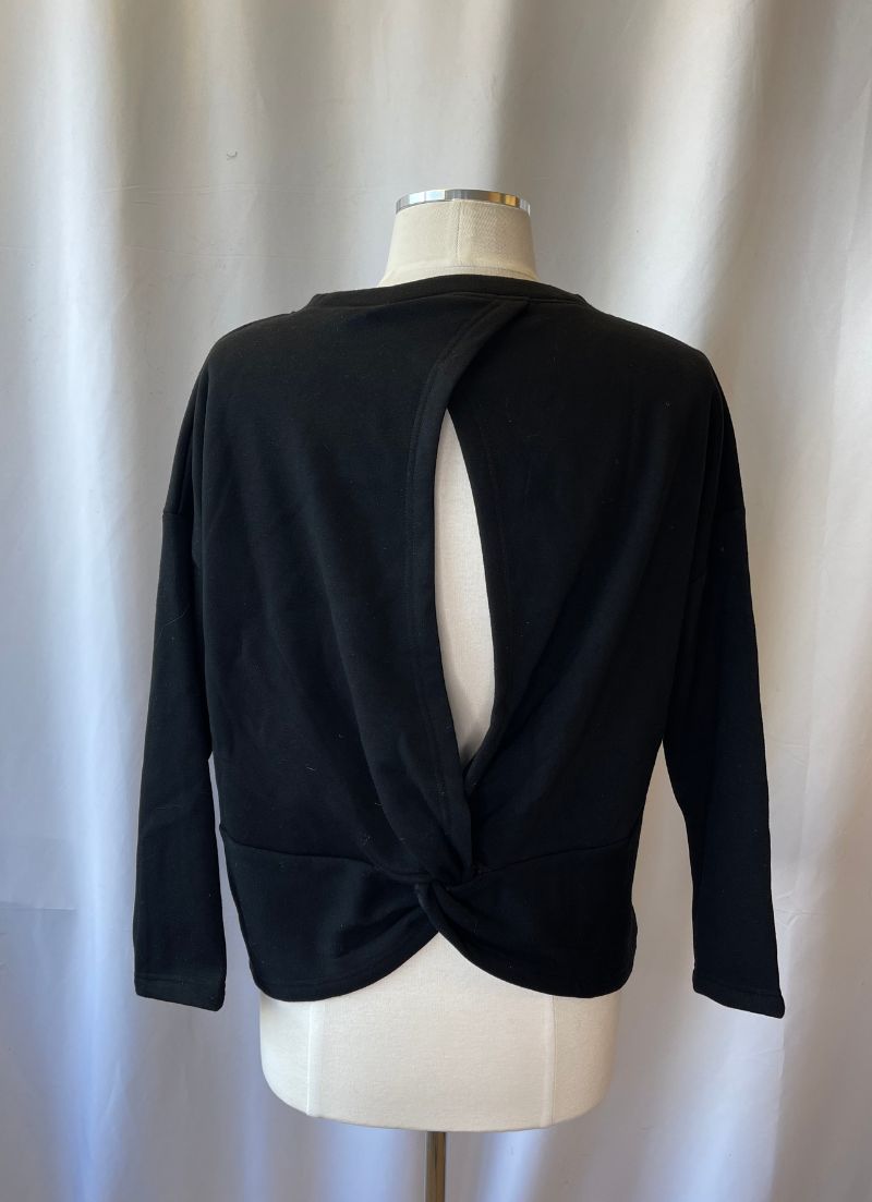 A super soft fleece lined sweater featuring a scoop neck and a twist feature at the back.