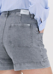 Slightly high waisted shorts with stitch detailing all over. They fit true to size and have a slight stretch to them.