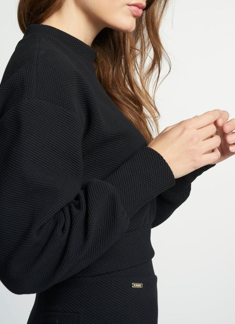 This sleek looking cropped sweater is perfect for traveling, a busy workday or just a chill day at home. Features include lowered shoulder seams and a crew neck; made in the Lune signature honeycomb fabric.