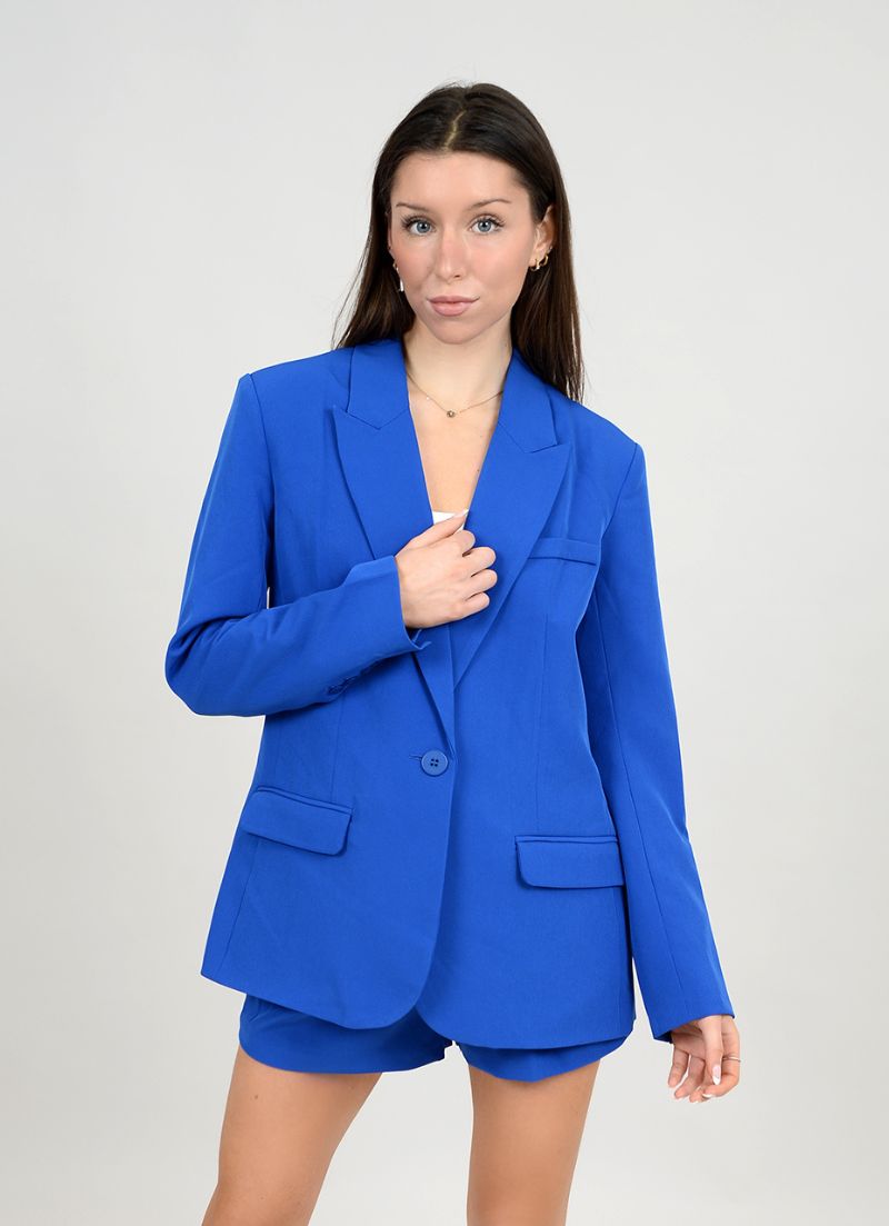 The Nalla Suit Blazer features a stylish button closure and a tailored cut, making it a perfect choice for work and leisure.