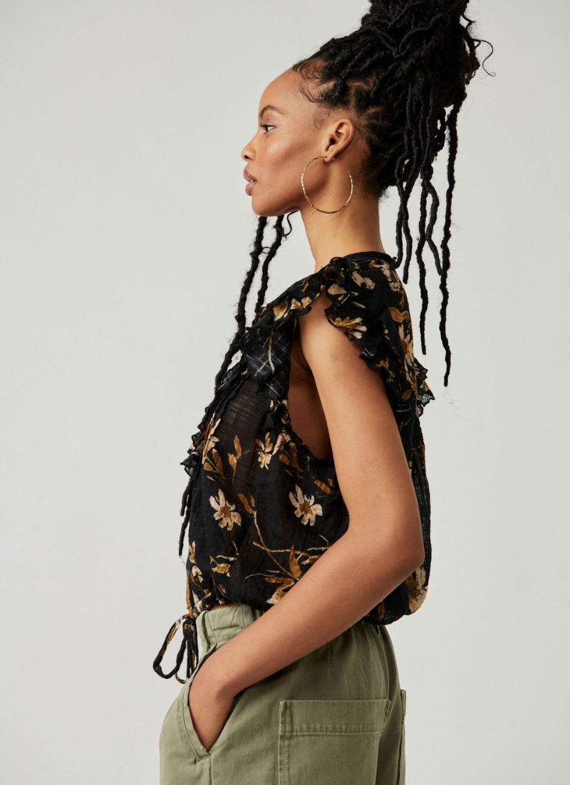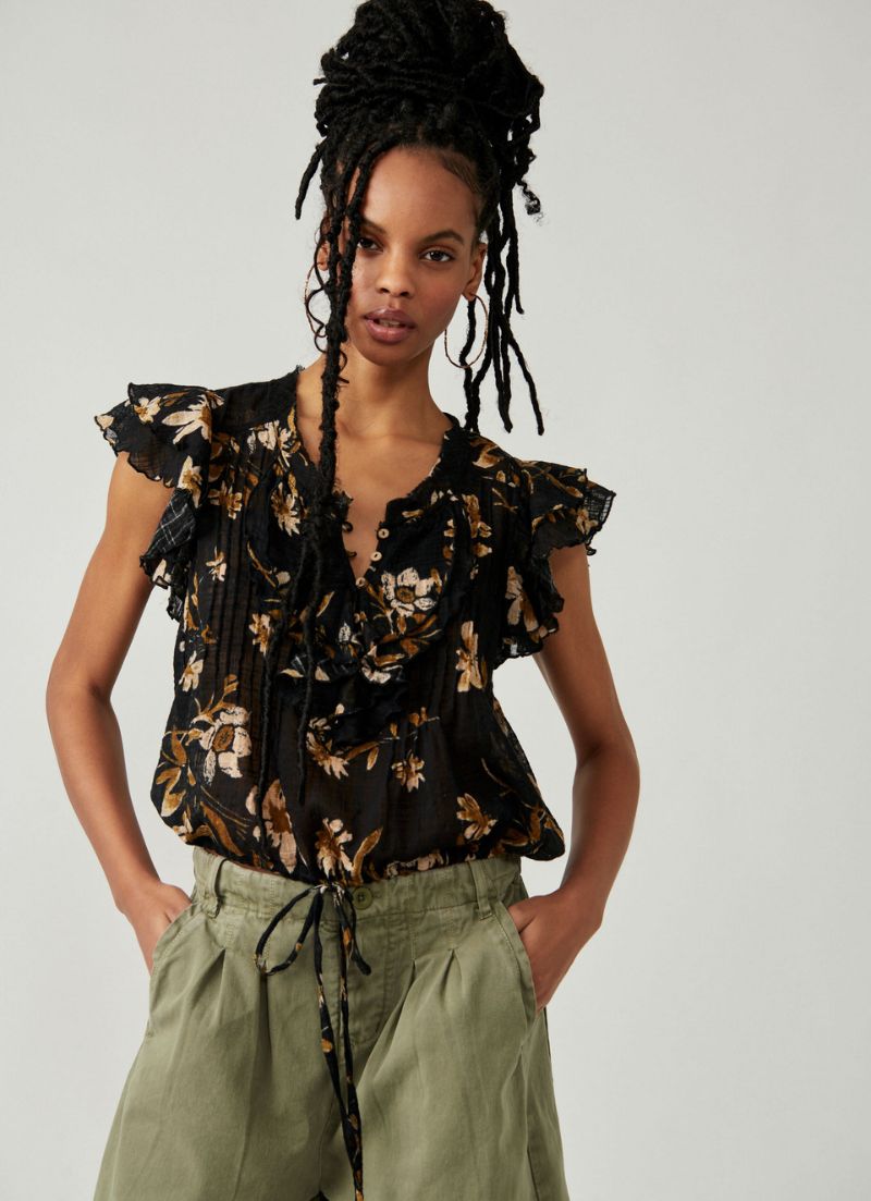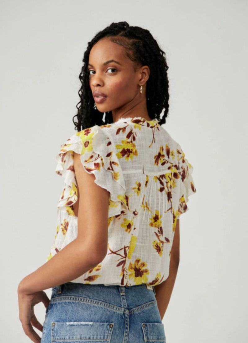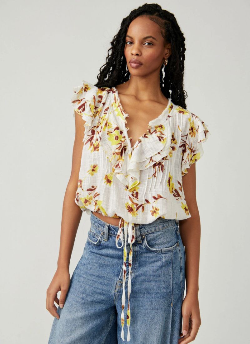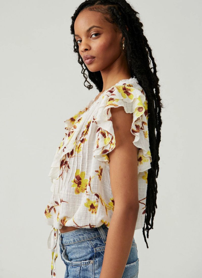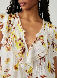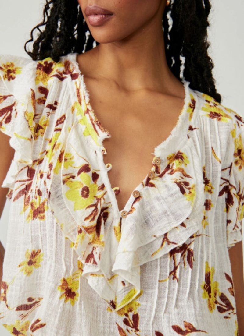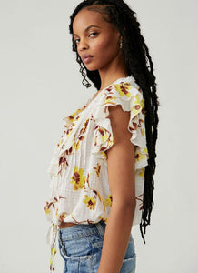 Your new favorite top featured in an effortless, essential silhouette with ruffle adorned detailing for added dimension. This top is slightly cropped and fits relaxed.