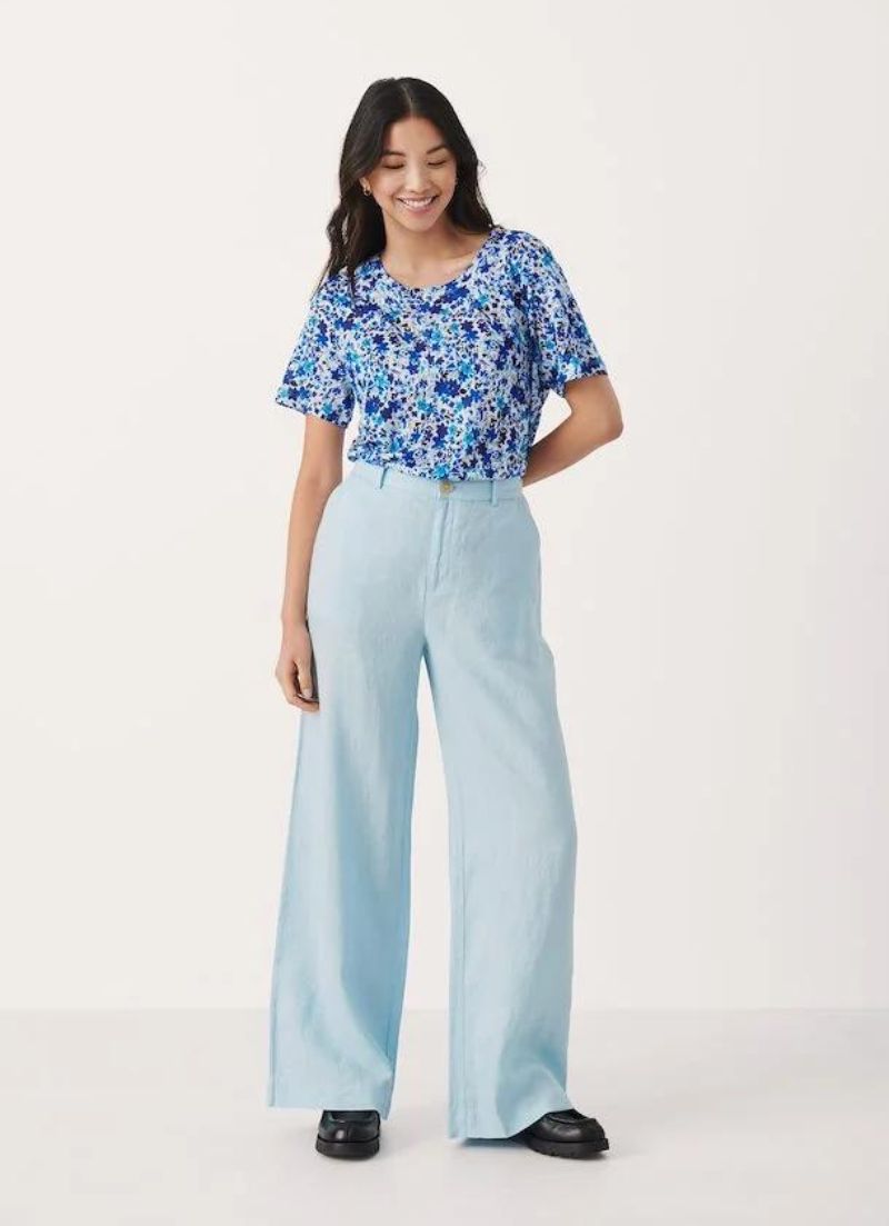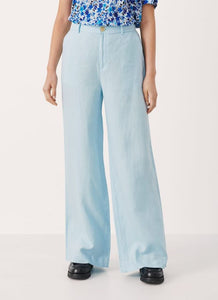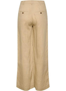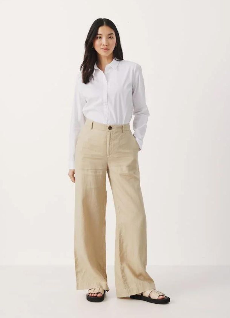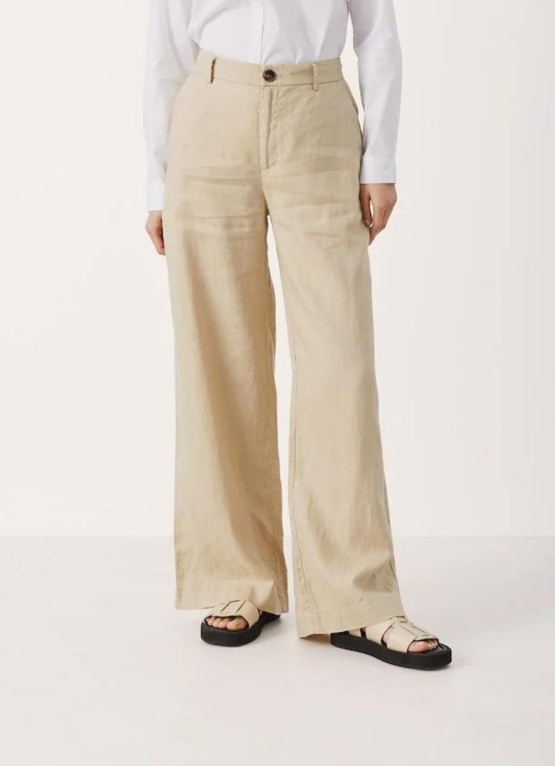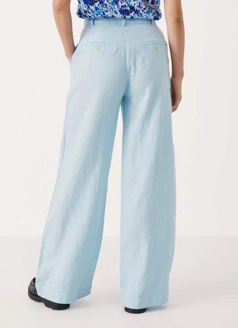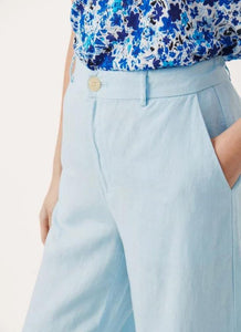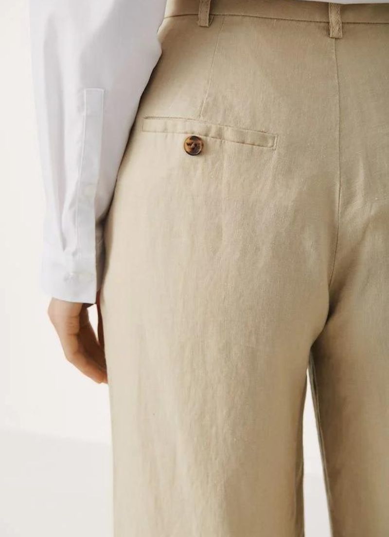 A wide leg linen pant featuring pockets, belt loops and a contrasting button. These a really comfortable and can be easily dressed up or down!