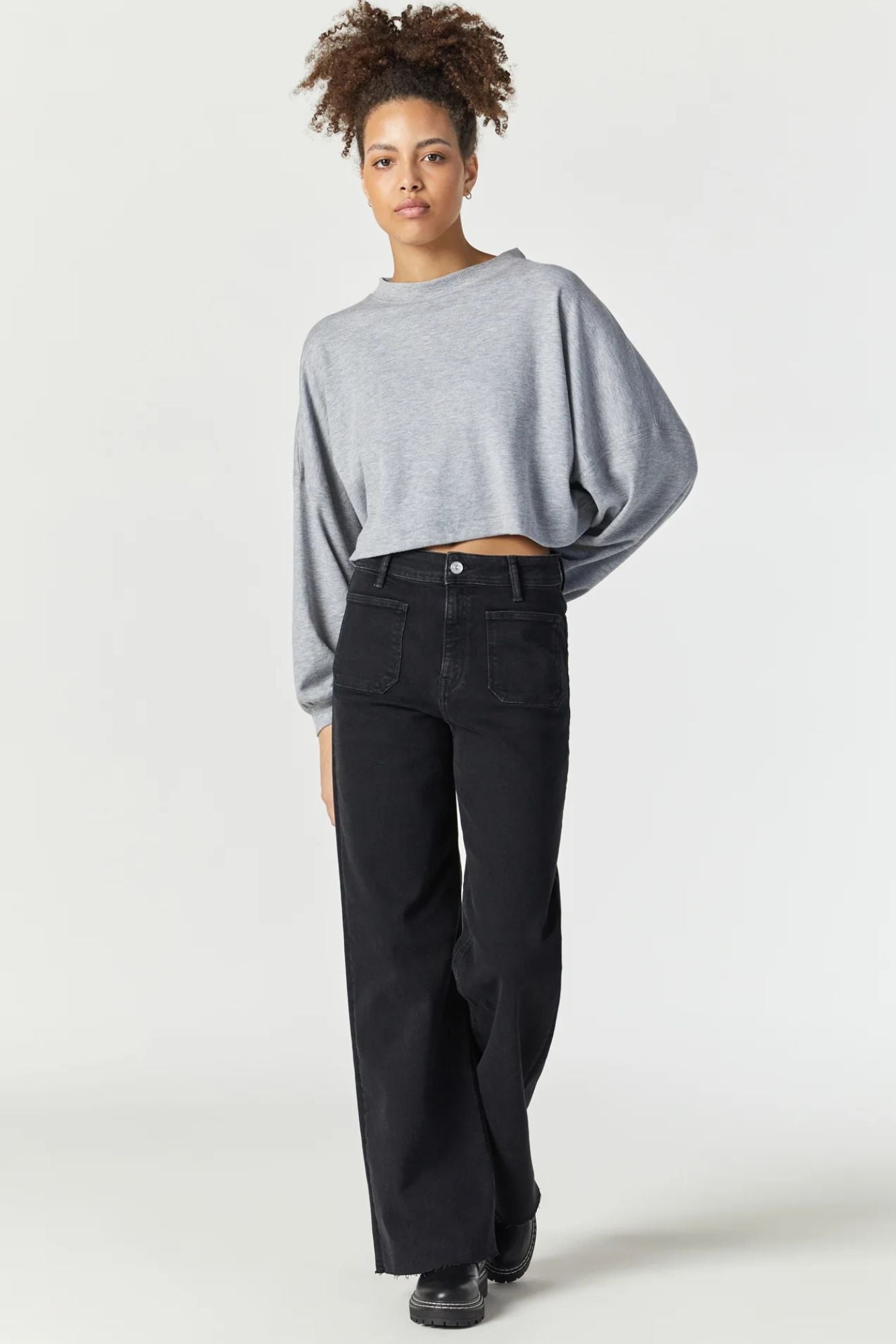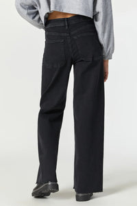 Introducing Paloma Wide Leg Jeans, featuring high rise and wide leg design. These on-trend jeans have sailor pockets for added style and a slim fit through the hip and thigh for a flattering look. The wide leg opening and raw hem complete the chic and modern aesthetic. Perfect for a fashion-forward and sophisticated wardrobe.
