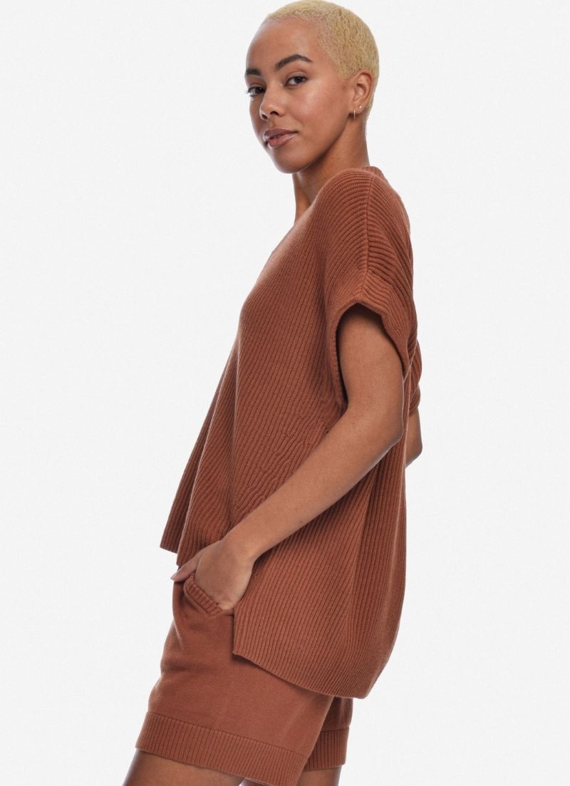 The Aiko Sweater Vest is designed with a modern relaxed fit, a plunging v-neckline, and a practical silhouette. This stylish sweater vest features soft cotton rib fabric with beautiful detailing.